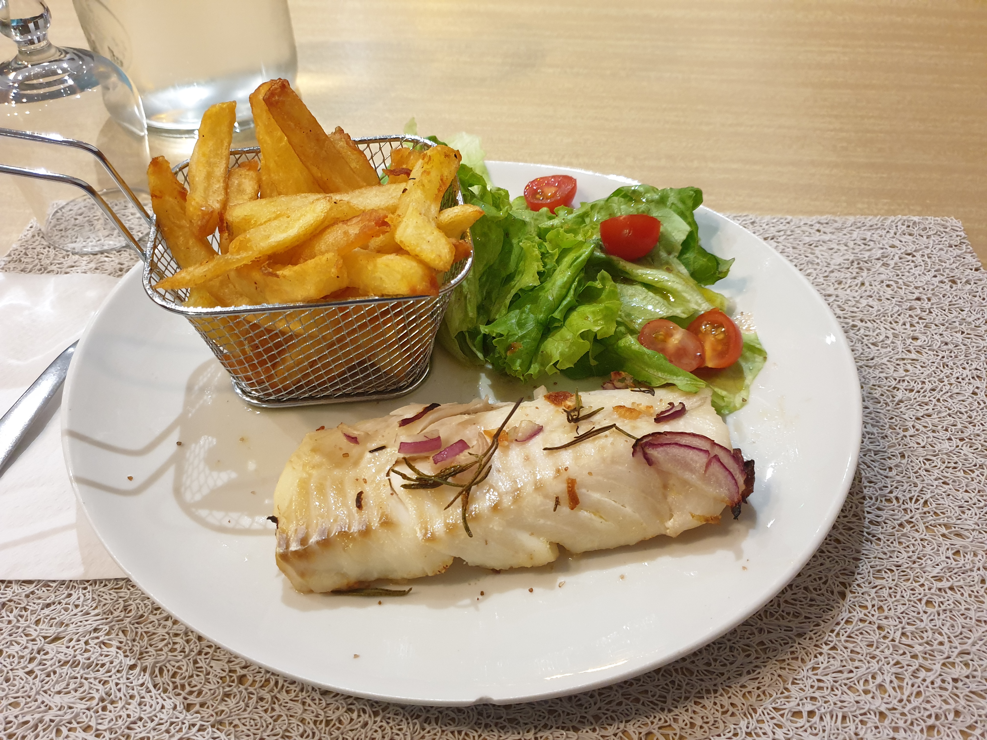 Excellent repas pas cher (salade de chèvre chaud, dos de cabillaud, dessert, pour une quinzaine d’euros. Personnel très sympathique