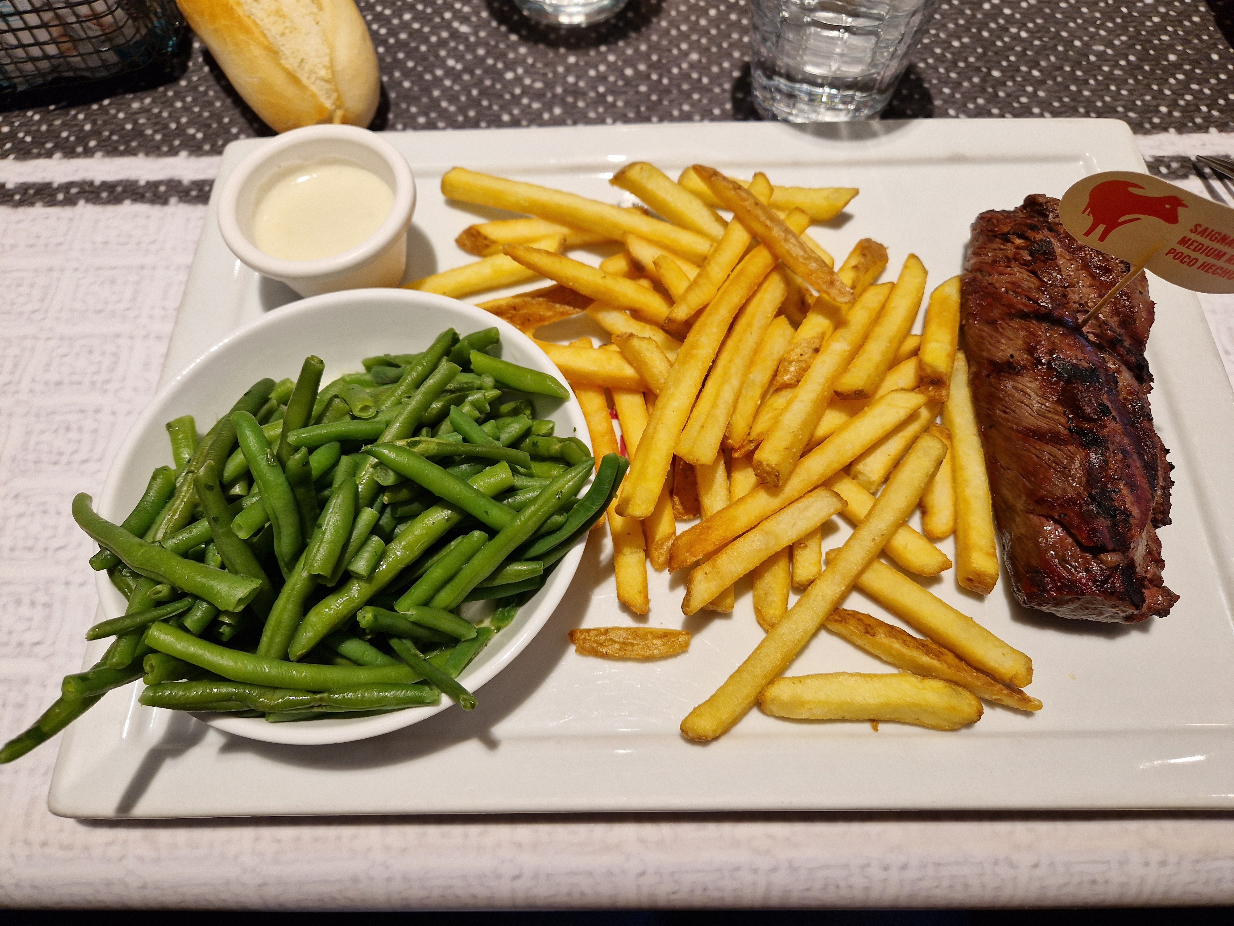 Posté le 08/01/2025 à 17:45"Il fait froid …. La viande refroidit à vue d’œil. Mais on me l’a réchauffée : parfait La bavette était bonne en goût mais nerveuse. De vrais couteaux à steaks sans dent auraient été bienvenus …."