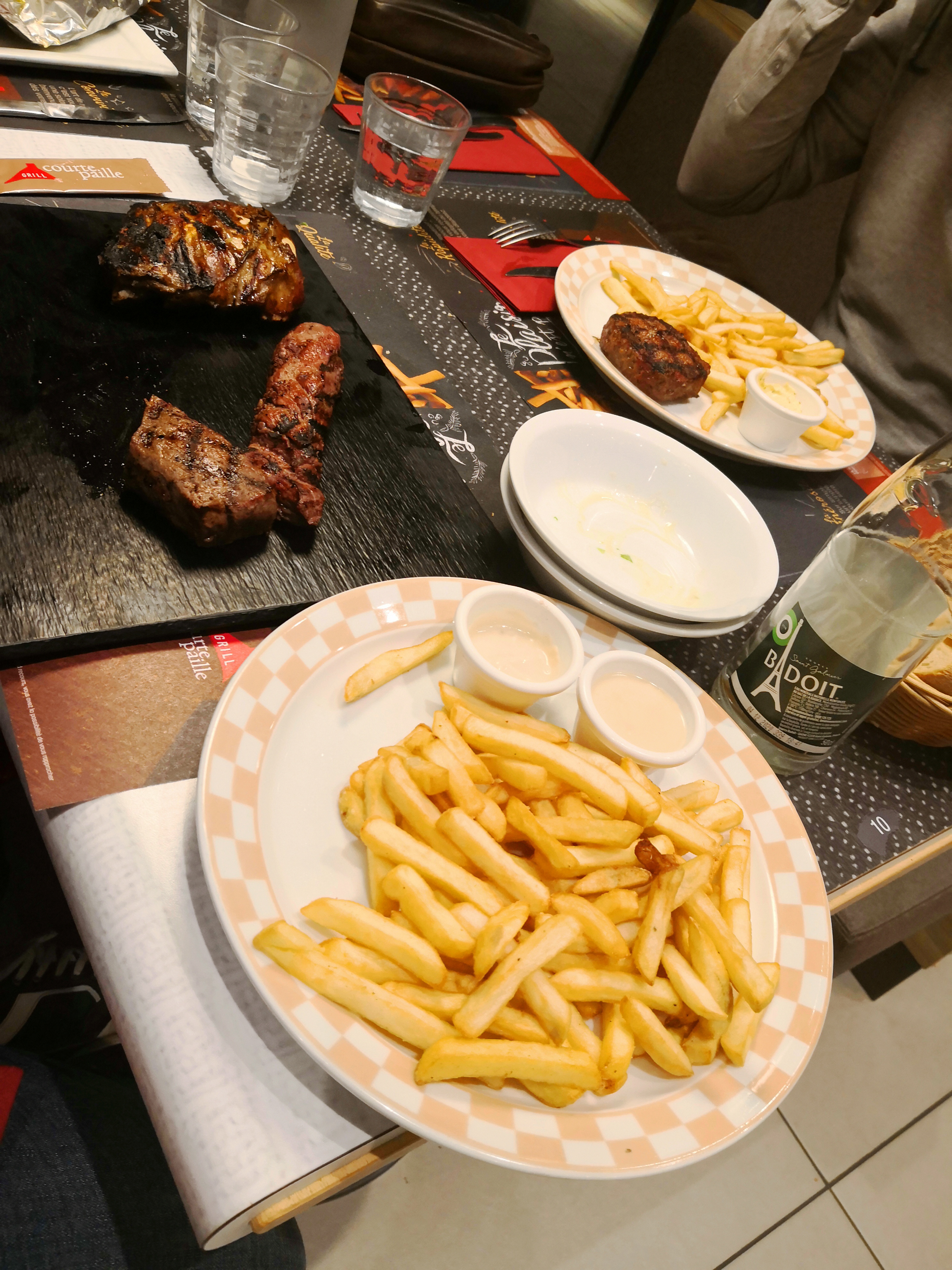 On est sur un Courtepaille d'autoroute, donc on ne vient pas pour avoir une gastronomie raffinée, mais par simplicité et efficacité, surtout avec des enfants en bas âge. Et alors que la plupart des restaurants français sont catastrophiques pour servir notamment des petits, un dimanche soir de grand retour à 21h, les plats arrivent quand même très rapidement et les enfants ne retournent pas immédiatement le restaurant. Et rien que pour ça, on les remercie.