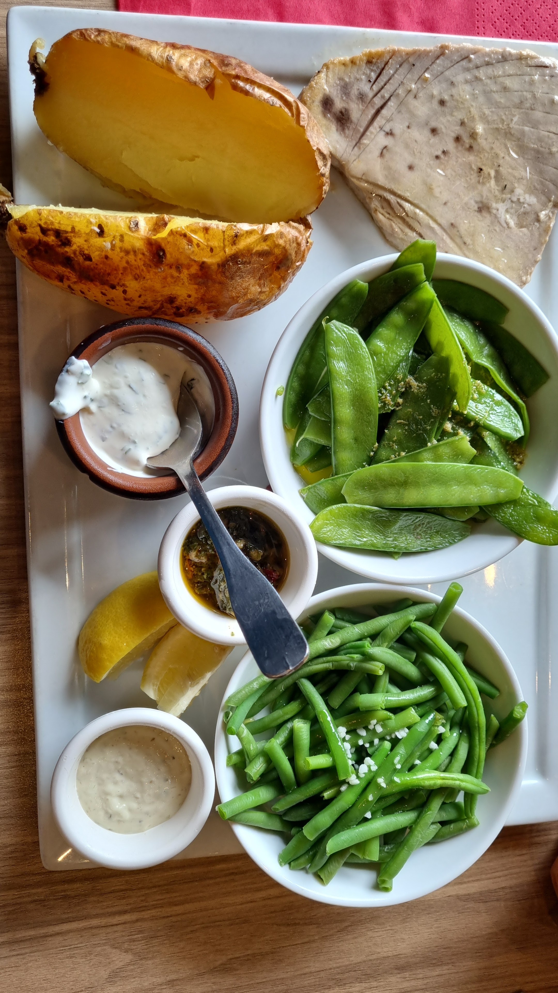 Posté le 23/06/2022 à 09:22"La qualité du plat est vraiment très moyenne (haricots verts sans goût, saumon sans saveur…). Heureusement que les desserts relèvent un peu la note (bonne tarte aux pommes et mousse au chocolat correcte)."