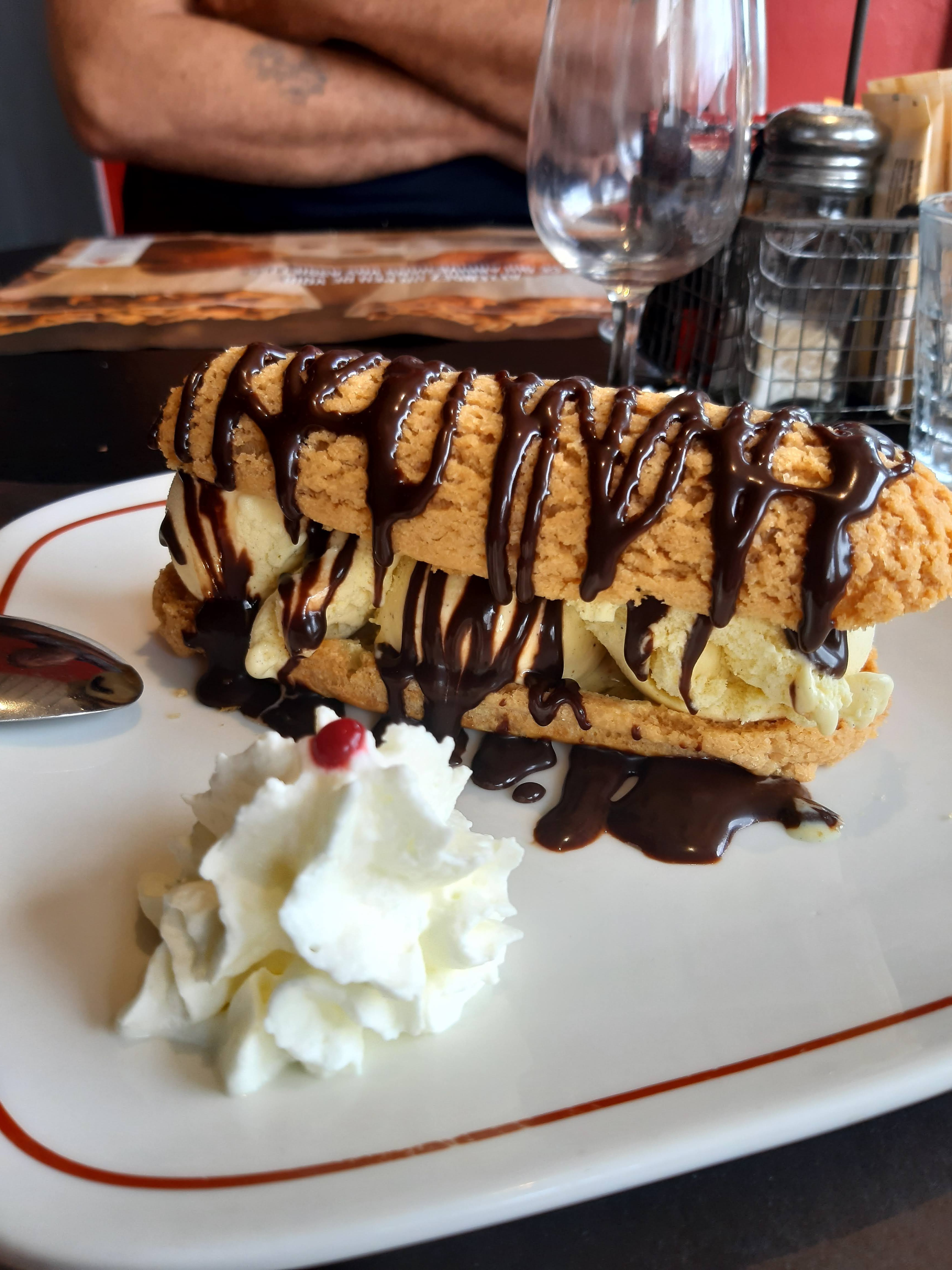 Arrivée à 13h15 ,pas de problème pour être servi ,pris menu rapide steak haché avec pommes de terre au four, petite mousse au chocolat finalement assez grande,je ne peux pas vraiment me prononcer pour le coup sur la cuisine