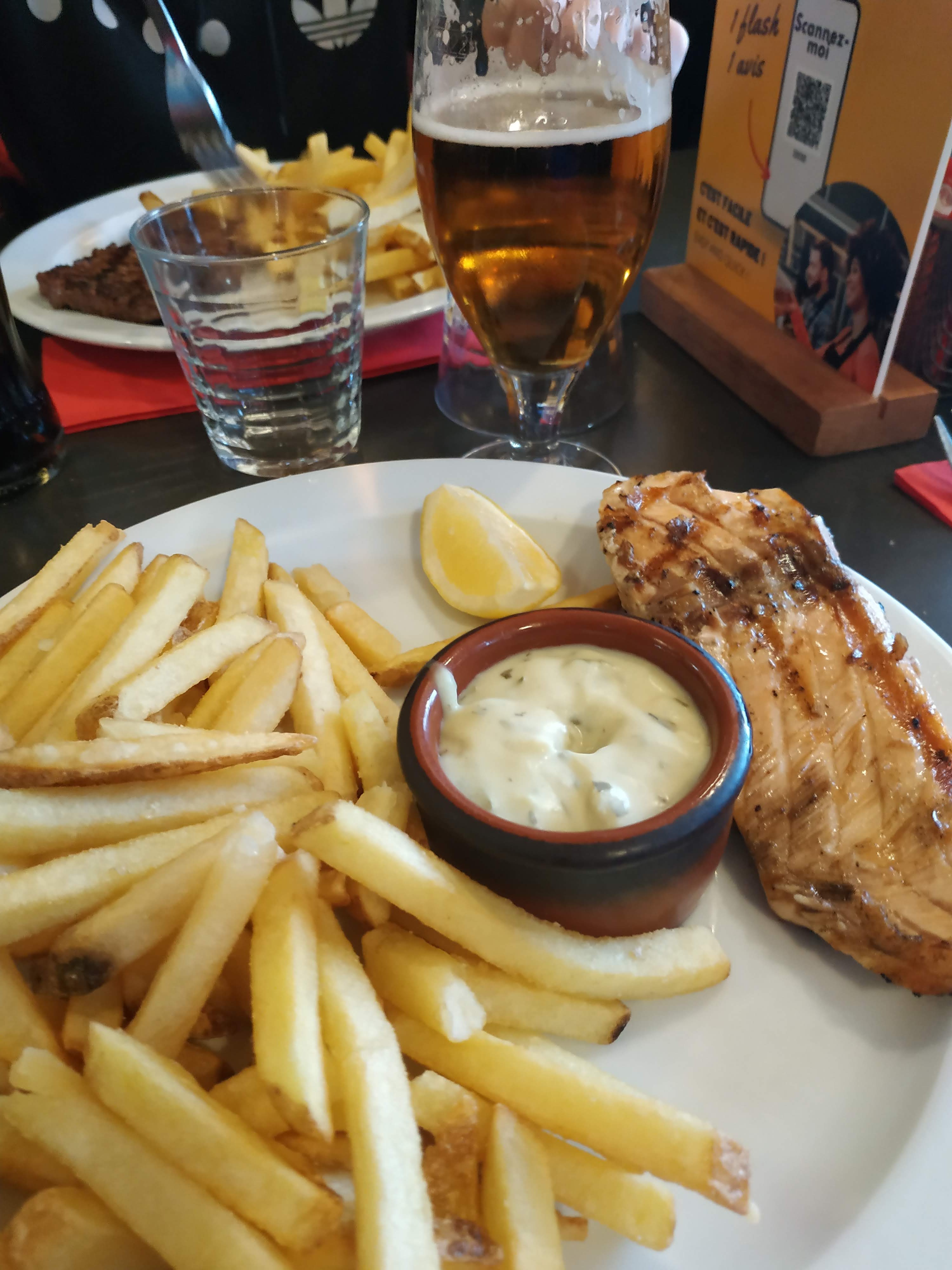 Posté le 14/11/2024 à 21:24"bon burger végétarien, accompagnements délicieux. le steak végé n'est pas sensationnel, il mériterait d'être remplacé par une marque meilleure (behond, heura, happyvore, etc...) pour une vraie imitation steak."