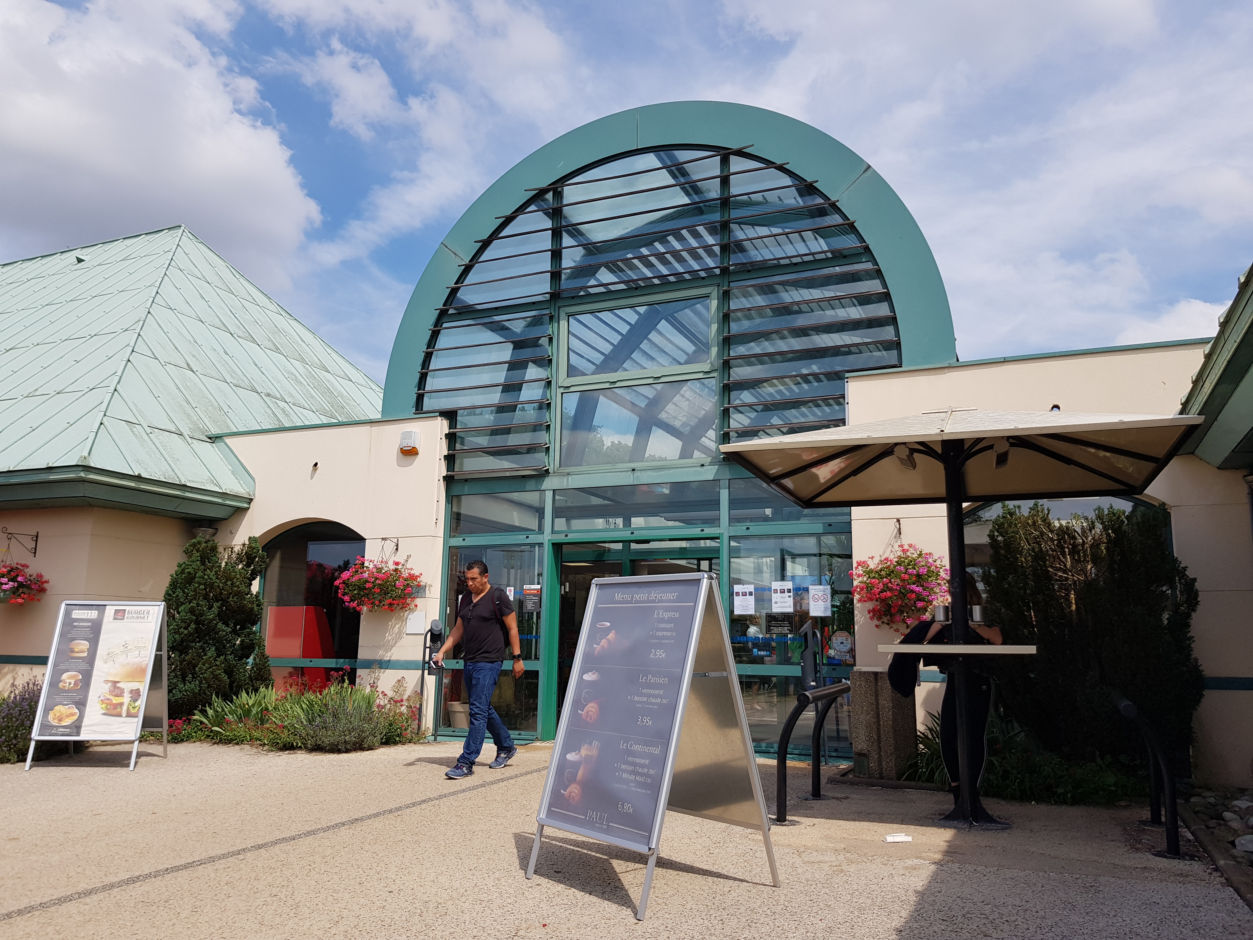"Aire de service d'autoroute agréable avec plusieurs enseignes pour se restaurer. J'ai pris un menu en terrasse chez Paul. Aire de jeux pour les enfants et zones vertes."