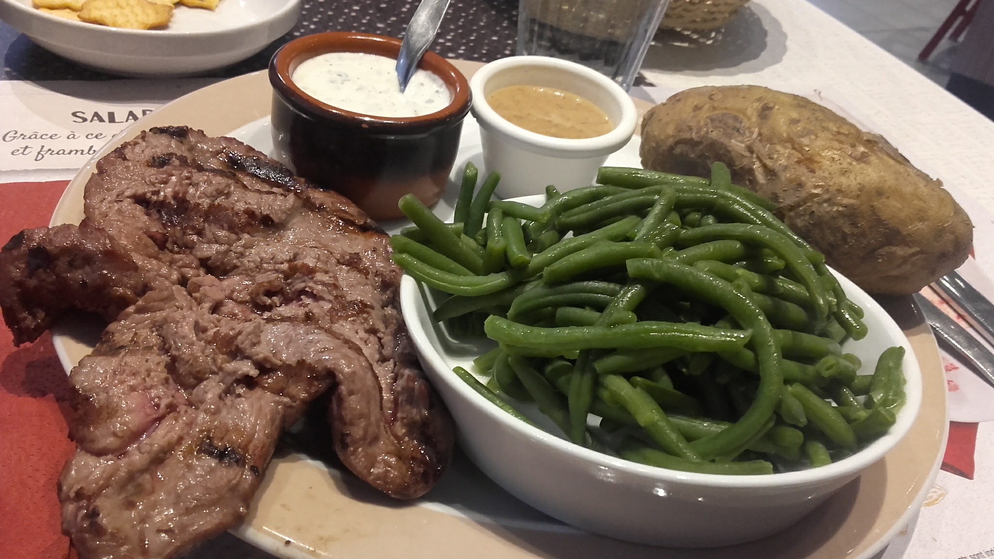 Posté le 24/04/2024 à 20:30"Cuisine pas à la hauteur Haricots verts encore surgelés Entrecôte pleine de gras et dur Sucrine a peine braisé Salade d’accueil sans sauce Geste commercial après réclamation Pas dessert peur d’être encore déçu"