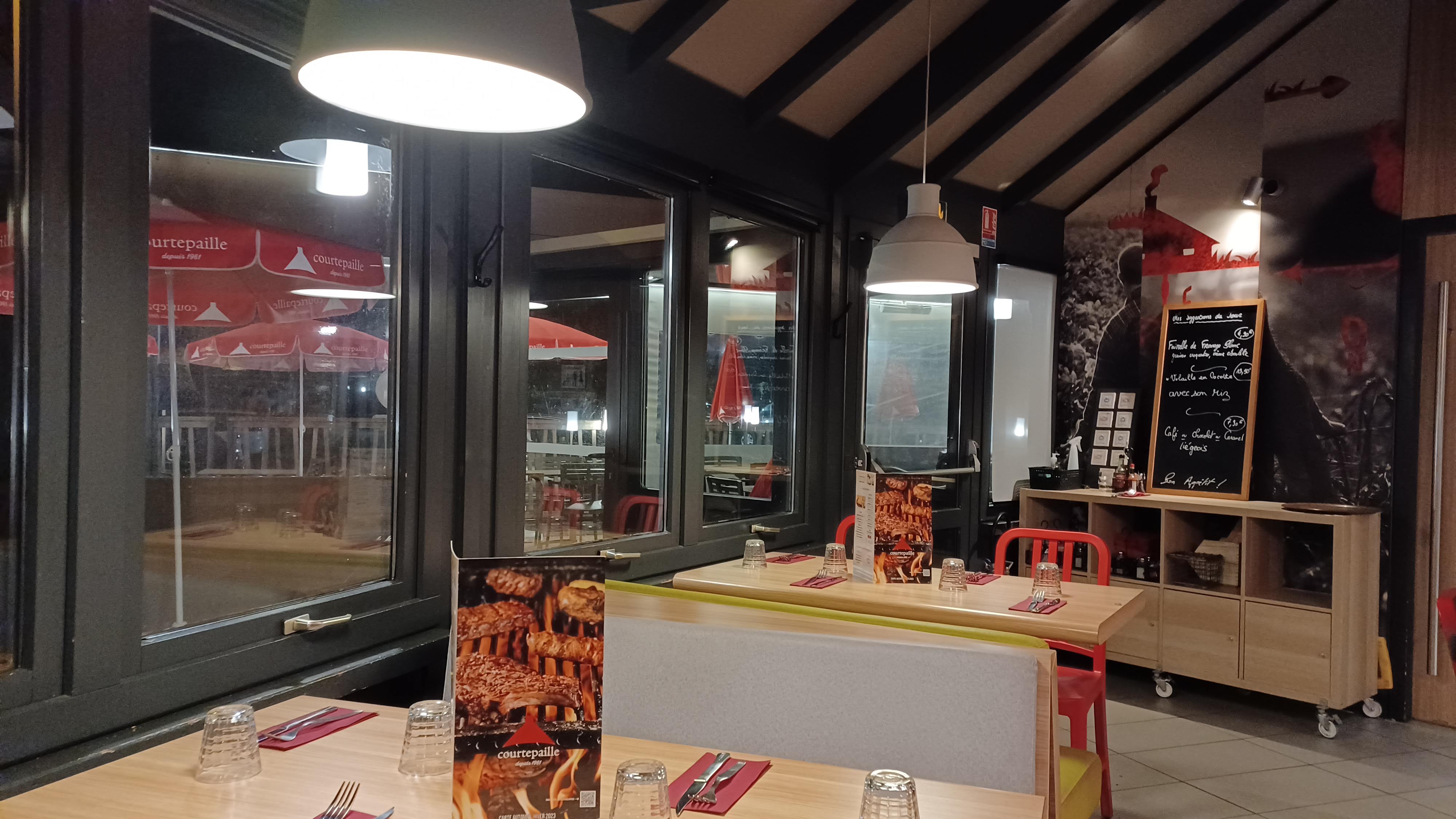 Personnel extrêmement agréable. Nous y sommes toujours très bien reçu avec sourires et bons soins. Qualité Courtepaille, donc bonne viande et bon poisson, choix large. Les desserts sont industriels mais restaurant familial , je conseille de s'inscrire pour avoir très régulièrement des remises de 50%/Toujours un solution, dessin crayon pour occuper les enfants et service rapide et efficace.bref jamais déçus! Établissement propre et bien tenu...bravo