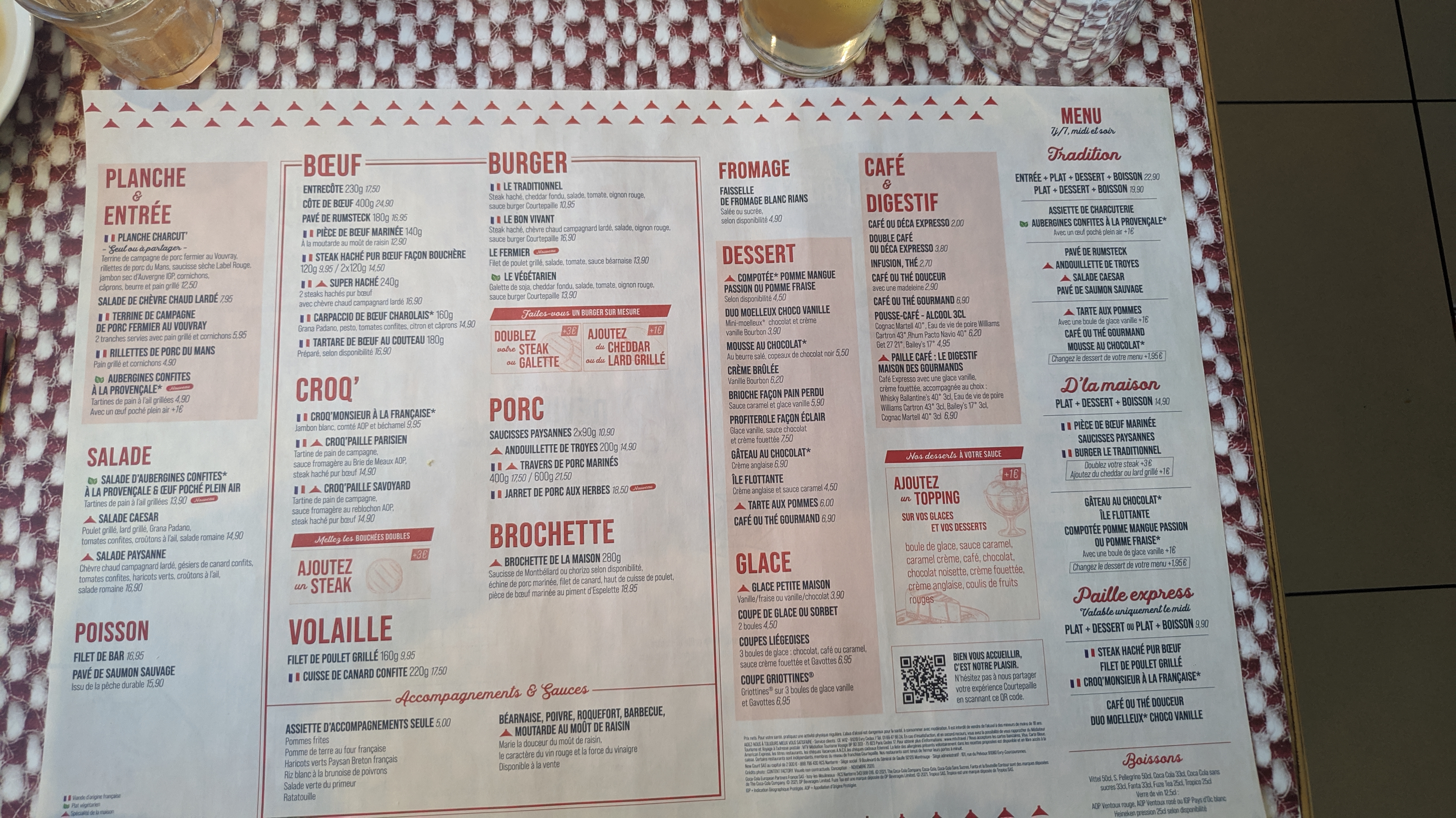 Posté le 16/08/2024 à 19:30"Lamentable tant au niveau qualité que quantité. Tartare préparé on se demande avec quoi (uniquement de la viande hachée) Travers de porc : prix exorbitant (21€) pour la quantité (4 côtes) Cocotte poulet la sauce ressemble à de l’eau. C’est un restaurant de passage donc risque moyen de perte de clientèle mais absolument pas à la hauteur de la chaîne. A fuir"