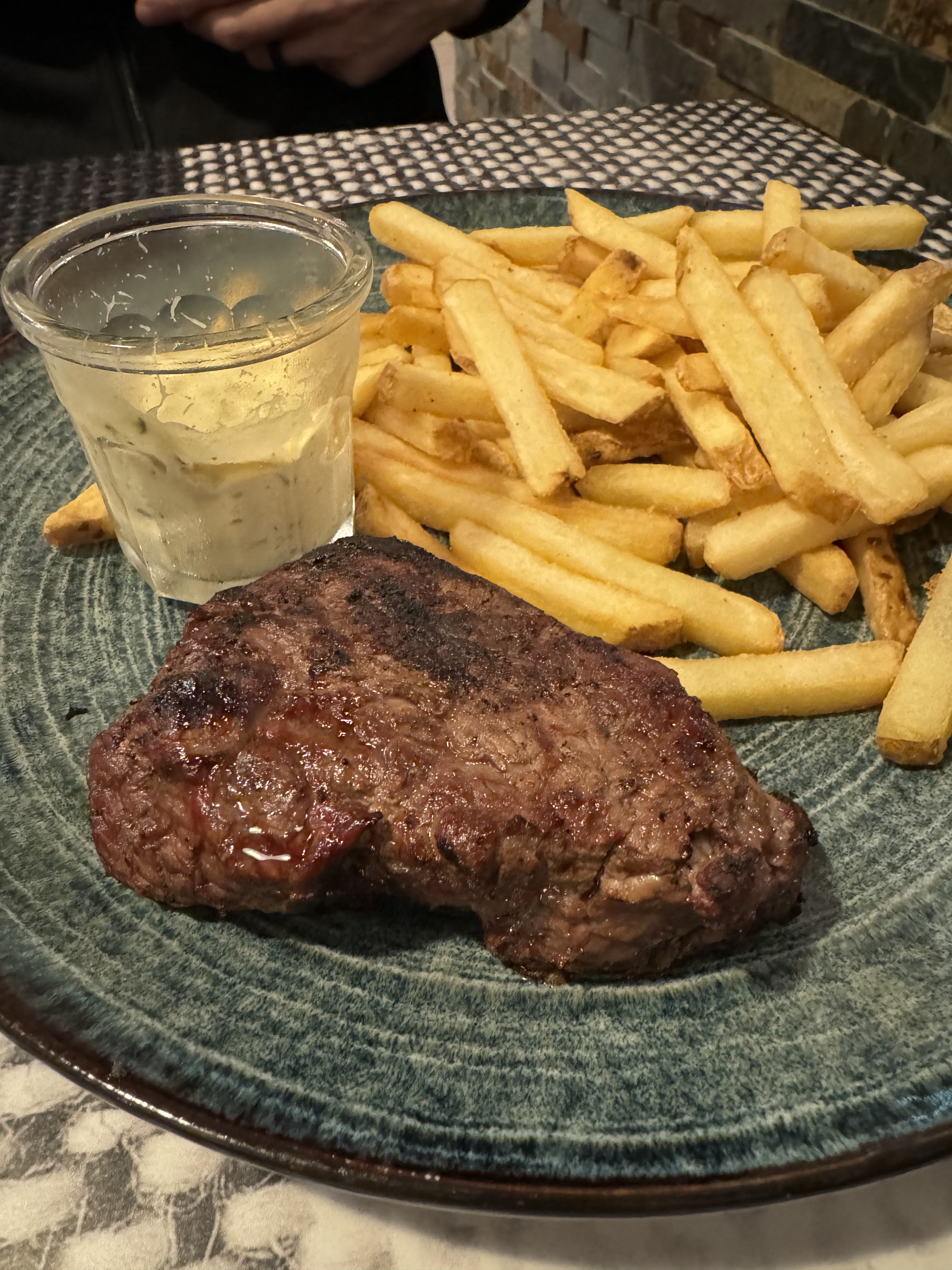 Posté le 01/01/2024 à 11:42"Plus d’ 1h20 pour un pavé de rumsteck et un café ! Il a fallu presque 1/2 heure pour prendre ma commande. D’ailleurs, un couple à côté de moi est parti tellement l’attente était longue. De plus, un tiers du pavé était immangeable car bourré de nerfs. Bref, si vous voulez manger rapidement ou une bonne viande, allez ailleurs."
