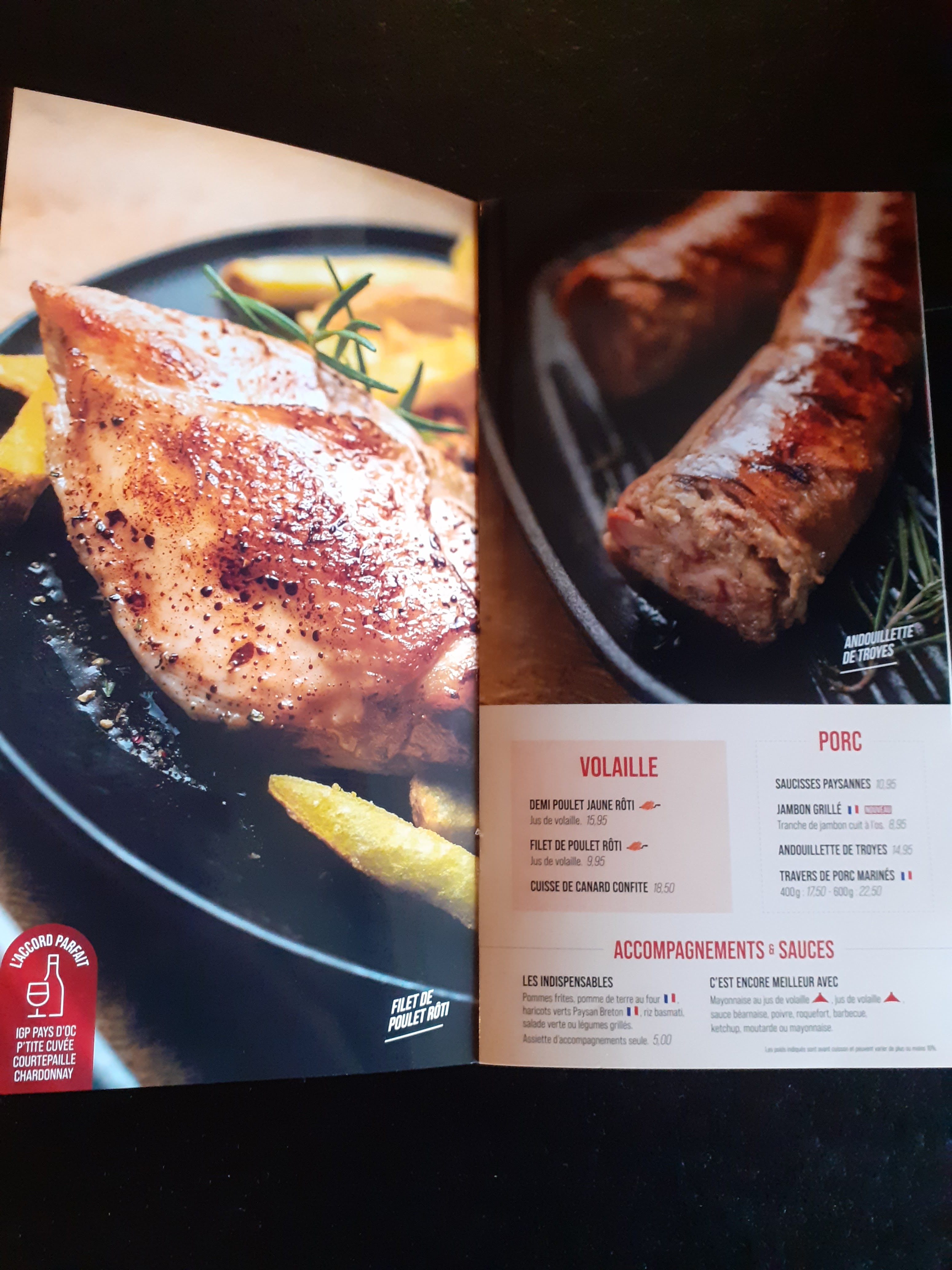 Posté le 29/04/2018 à 20:56"Endroit sympathique, service rapide et efficace. Bonne grillade sans révolutionner le genre. L'andouillette est très correcte. La salade d'accueil est anecdotique pour ne pas dire inutile. Les rillettes de porc sont quasi congelés et plutôt fades. Bref correct mais sans plus."