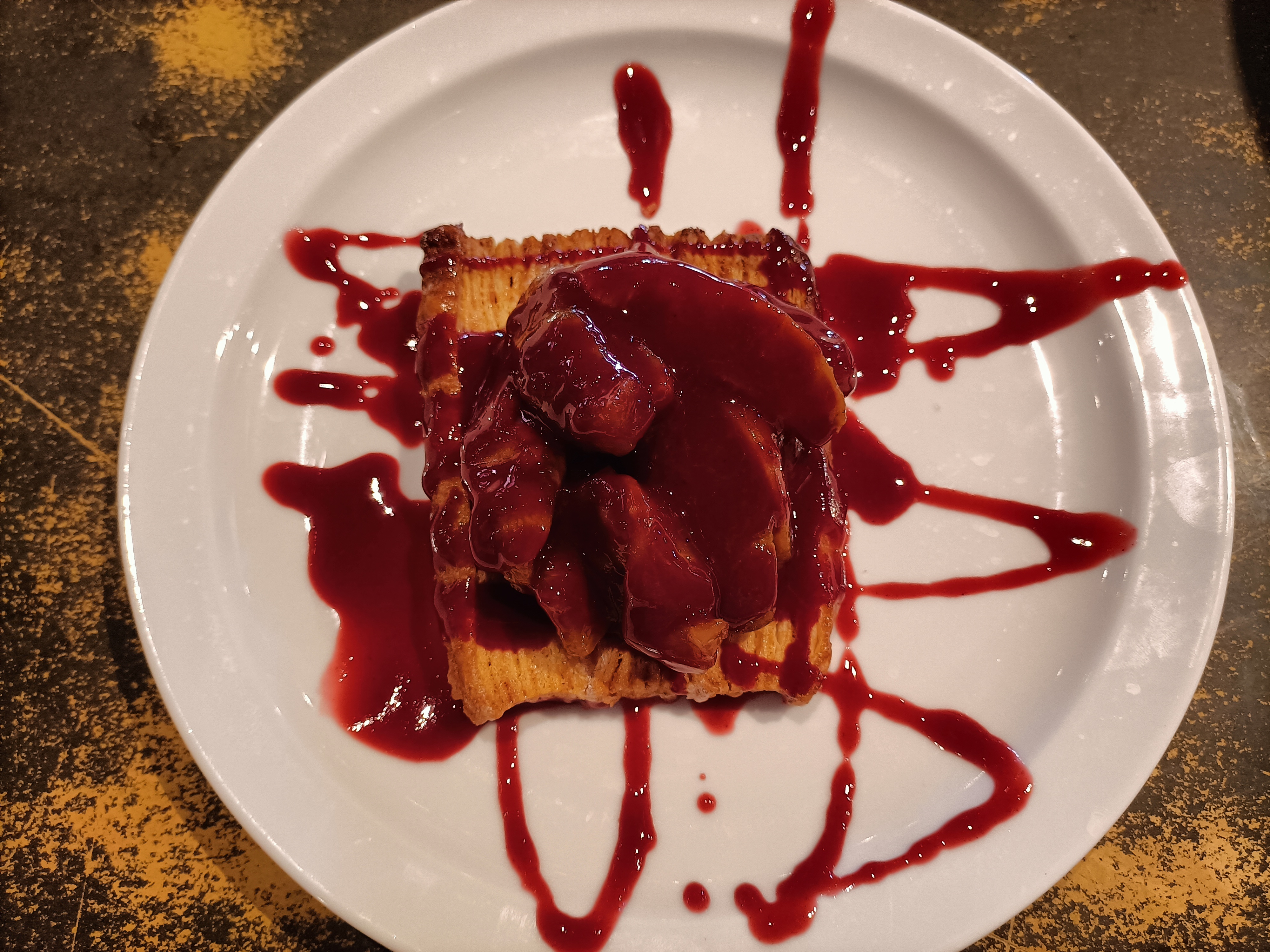 Posté le 01/11/2021 à 17:17"Lieu très bruyant, repas de bonne qualité mise à part le dessert ou au lieu d'une belles assiette de pommes poires rôties, je me suis retrouvée avec une vulgaire coupelle et morceaux de pommes et poires. Voir photo proposée au menu et suivante, ce qui a été servi. J'ai fait la remarque à la serveuse qui n'a pas semblé apprécier. Viande de bonne qualité, il ne reste juste à être conforme aux photos proposées pour les desserts."