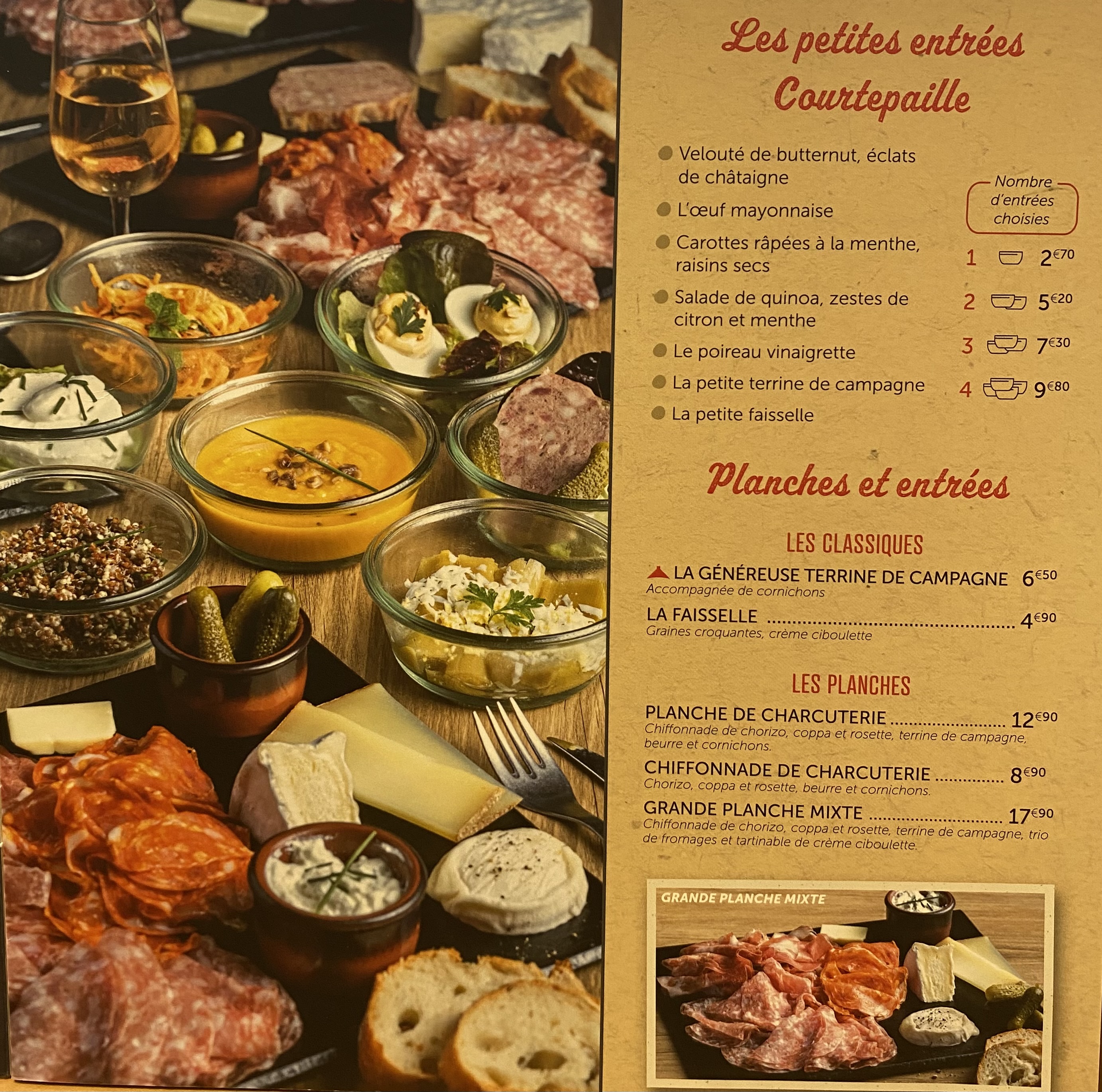Un conseil oubliez l'enseigne et ses heures de gloire. Qu'est-ce qu'on peut attendre de Courtepaille aujourd'hui ? Les entrées c'est du basique de cantoche. Pour le plat, s'orienter sur une grillade, ça reste leur cœur de métier. Le plus de ce Courtepaille : un resto où on est très bien accueilli. On mange un steak frites correct. Et comme il est dans l'hôtel, on peut retourner dans sa chambre se poser pour la fin de soirée en un éclair. Et ça c'est un luxe !
