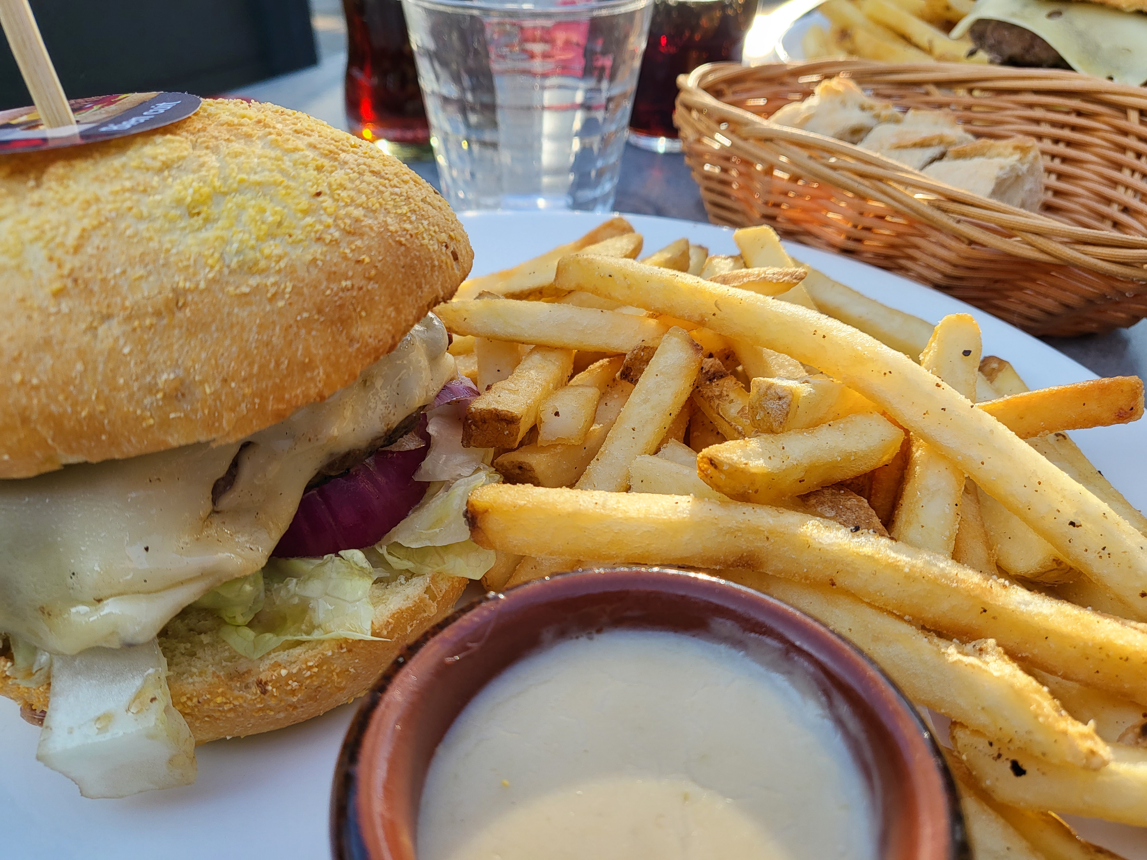 1h45 pour attendre un plat surgelé, une viande biscornue raplapla, des frites pas cuites, une mayonnaise fluorescente. Un personnel fuyant et visiblement surchargé malgré le flux acceptable. Des verres pas consommés entièrement nous ont été arrachés sans un mot. Une prise de commande au bout de 1h. Pas de fourchette sur la table, 4 sauces pour 11 personnes. Bref une expérience que je ne revivrai pas. Dommage car un serveur dans le lot est très sympathique !