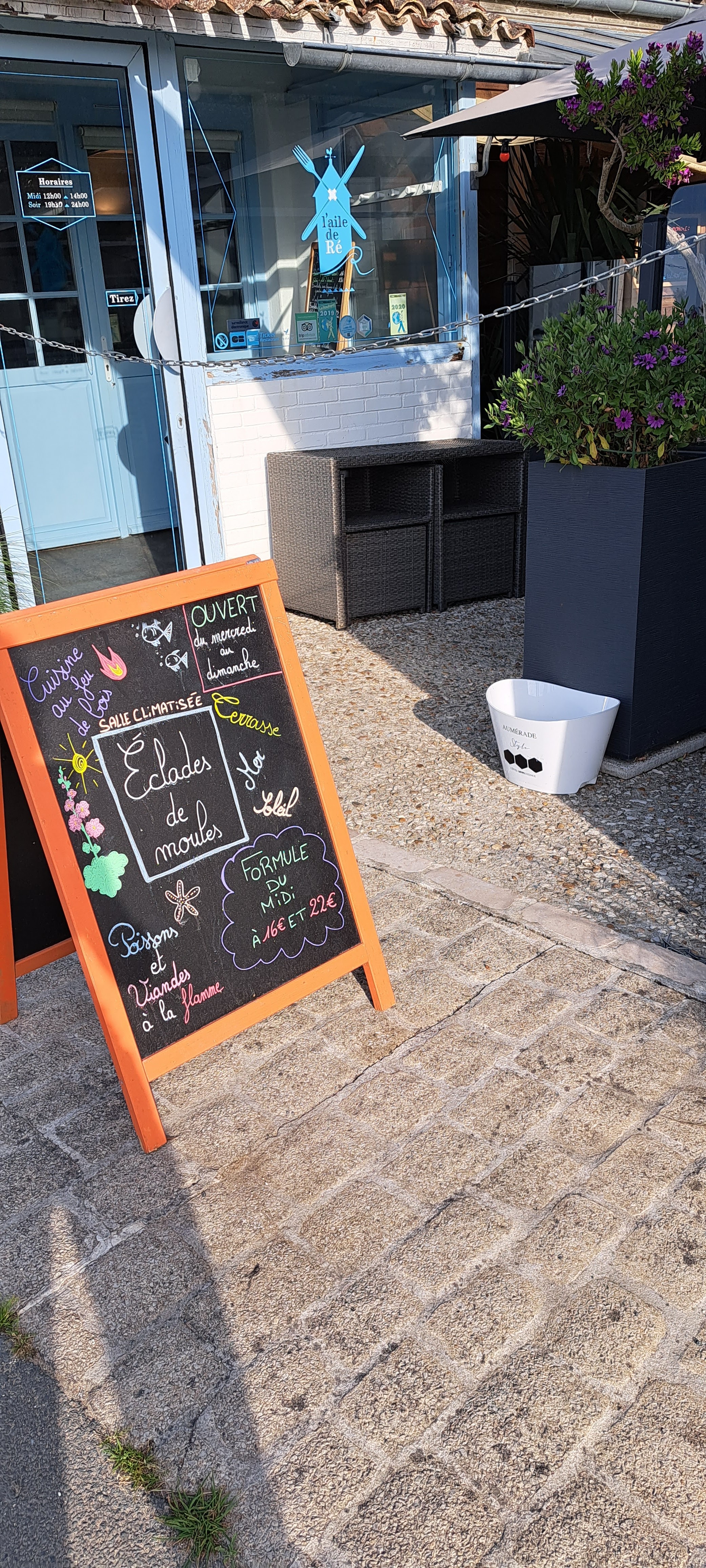 Découvrez toutes les informations concernant Restaurant de grillades à la française L'Aile de Ré qui se situe au 2 Chem. de la Raise Flottaise, 17580 Le Bois-Plage-en-Ré (17). Cette fiche inclut les photos, les horaires d'ouverture, l'adresse, le numéro de téléphone et les avis des clients.