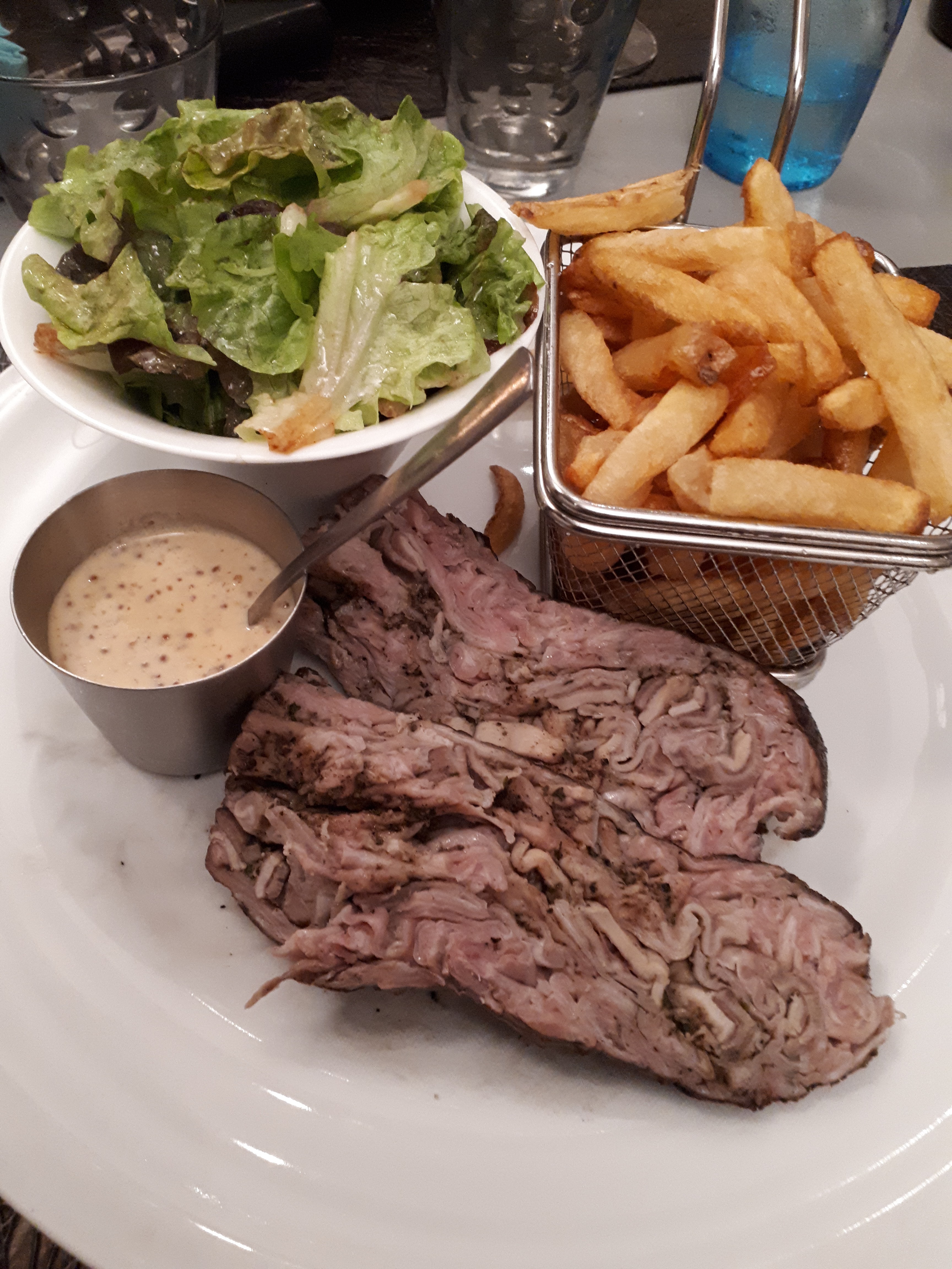 "C’est la deuxième fois que je mange ici... la première était il y a quelques années. J’avais un souvenir meilleur... tout est bon mais il manque le « truc »... les plats sont plutôt très simple, pas vraiment cuisinés... il faut y aller pour tester leur façon de cuire les moules mais ça ne casse pas trois pattes à un canard... un midi est peut-être mieux qu’un soir... trop cher..."