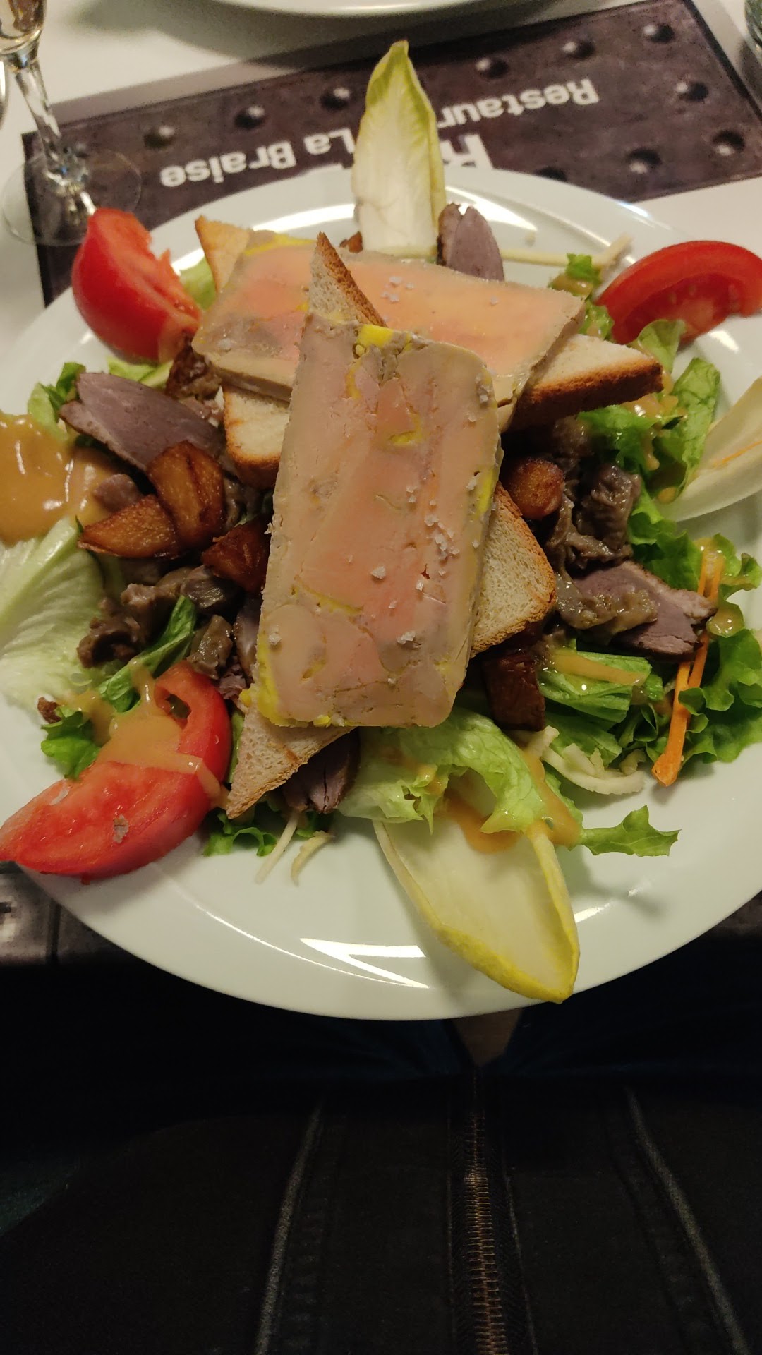 Salade Terre et Mer, excellente! Magret au foie gras, un régal ! Service impeccable et bon accueil Un peu cher néanmoins