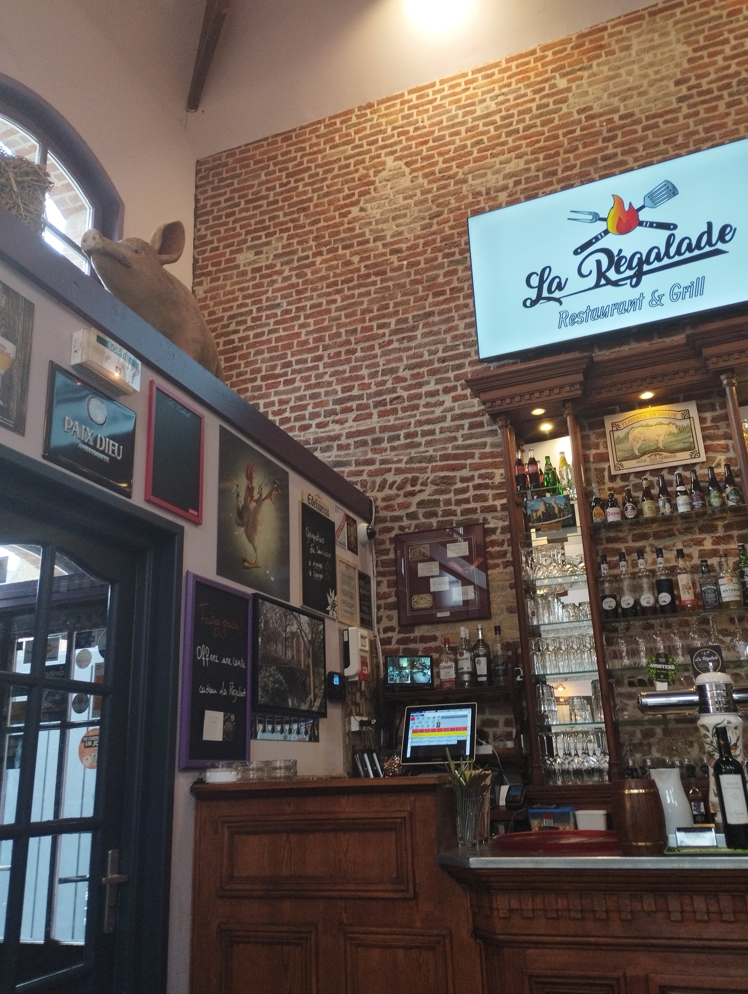 En passant dans la région pour le travail cette semaine. On décide de s'arrêter manger un morceau à La Régalade. Très belle surprise car l'extérieur de payait pas de mine mais l'intérieur est très chaleureux ! Le personnel est aux petits soins et d'une grande gentillesse. Dès que nous sommes installés le serveur nous apporter un pâté de bienvenue. Nous avons bien apprécié le geste comme le pâté. La carte est bien faite avec un bon rapport qualité/prix. Un estaminet qui propose des belles bières pressions : Blonde Esquelbecq, Anosteké et de la Paix Dieu ! Les assiettes sont bien servies et tout dans le plaisir. Nous avons tous simplement passé un bon moment !