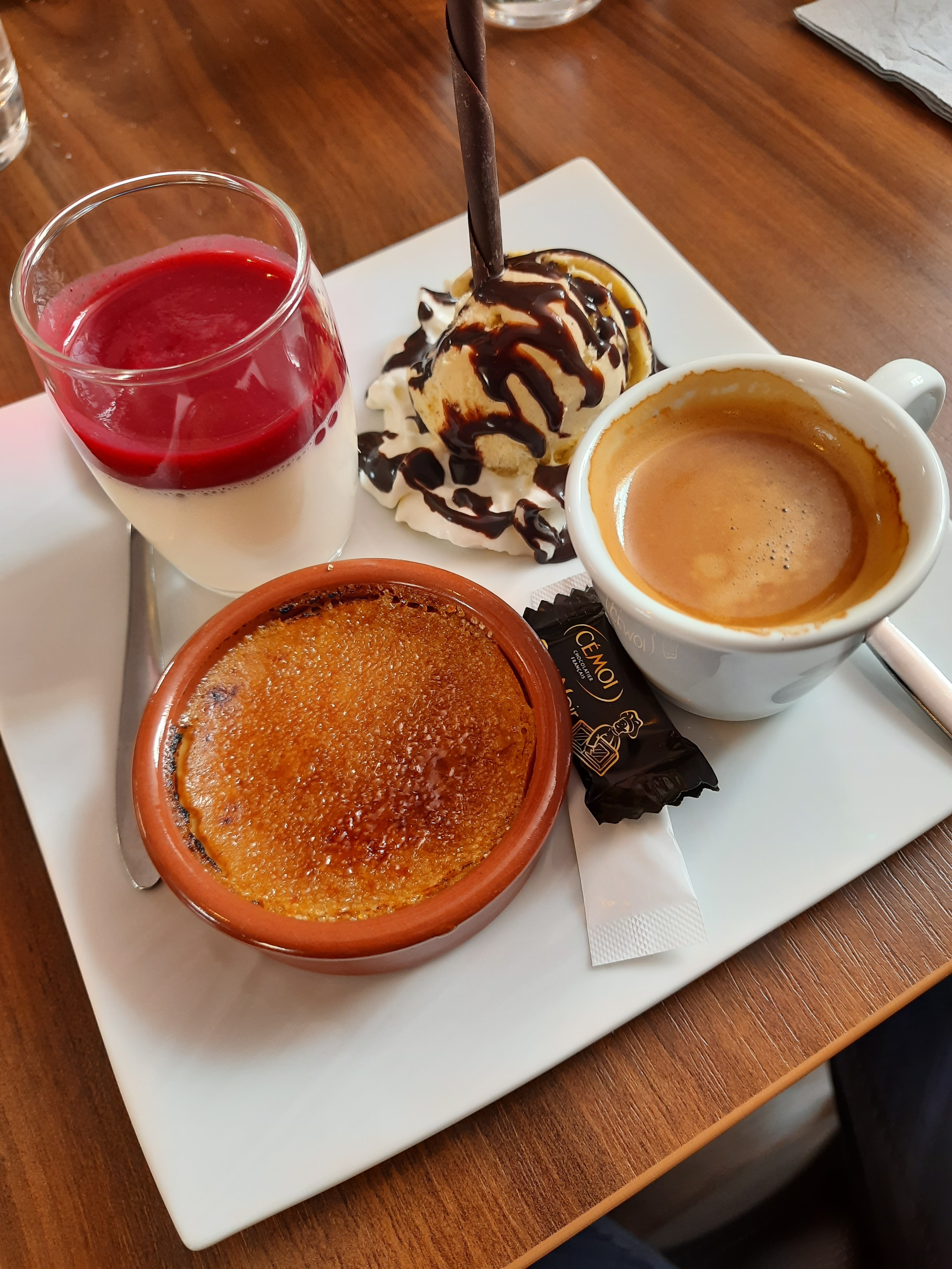 Presque parfait un bon accueil, service rapide , cuisson du canard parfait, le poulet de ma femme bien également, demande un coca sans sucre mais on me donne un avec sucre j’ai rien dit pour pas déranger rien de grave , le café gourmand bon et copieux, hormis ce détails un bon endroit nous reviendrons . Nous avons passer un agréable moment. Par contre il serait une bonne chose d’inviter la minorité de fumeurs à ne pas fumer en terrasse et d’aller a quelques mettre de l’établissement pour respecter la majorité de non fumeurs pour qu’ils puissent profiter paisiblement de la terrasse extérieur…