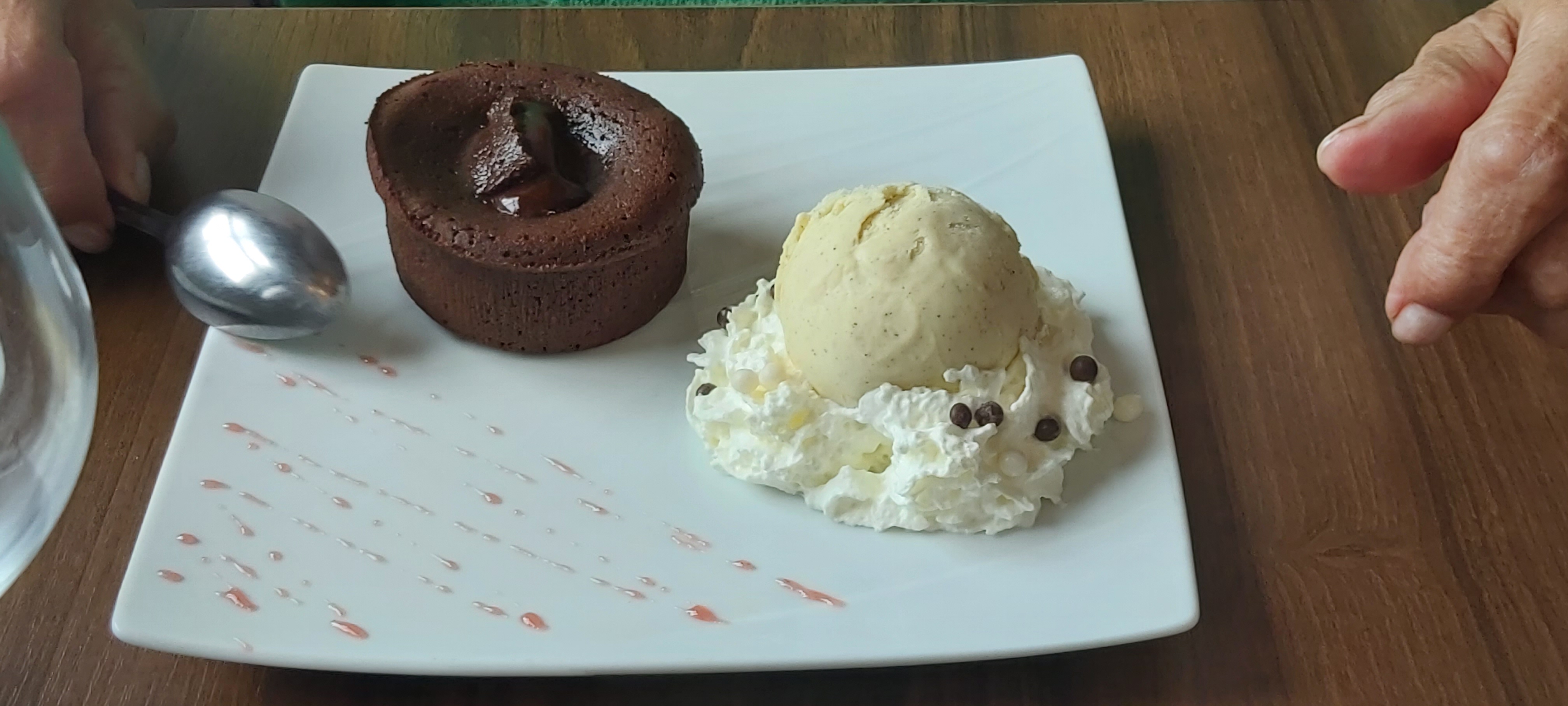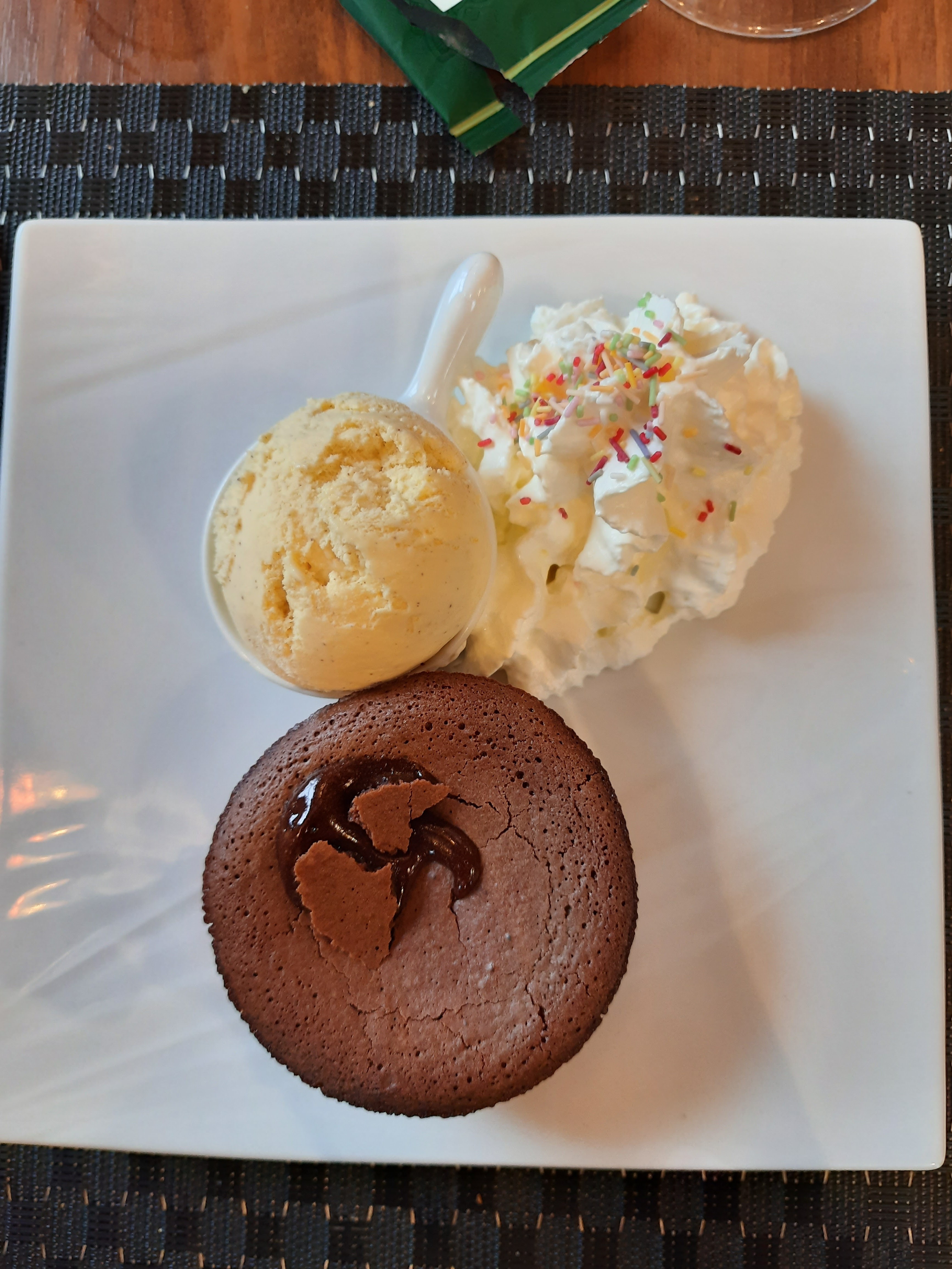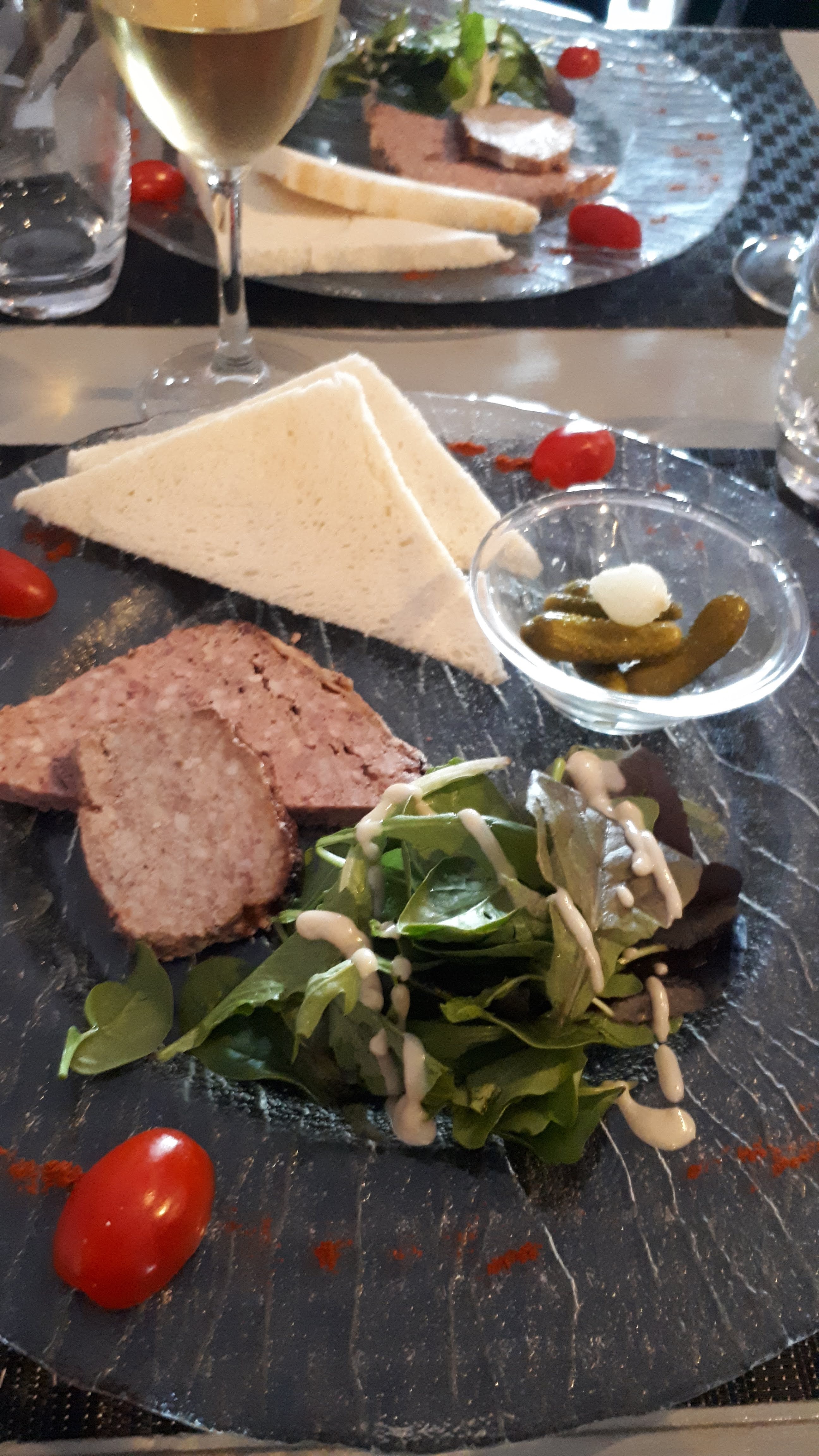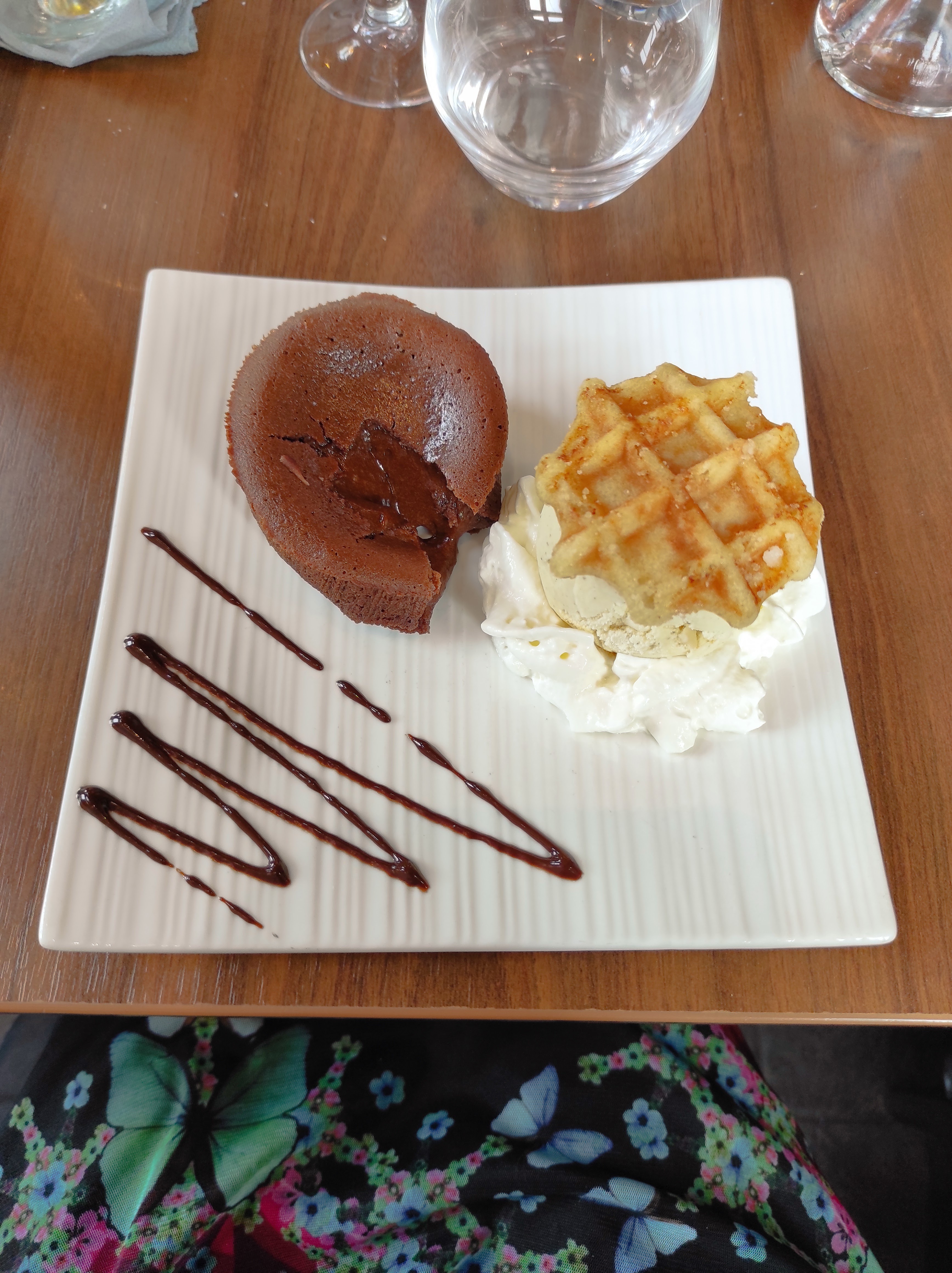Repas du midi, personnel souriant et attentionné... Un seul reproche, la sauce de la cassolette de cabillaud, beaucoup trop liquide.