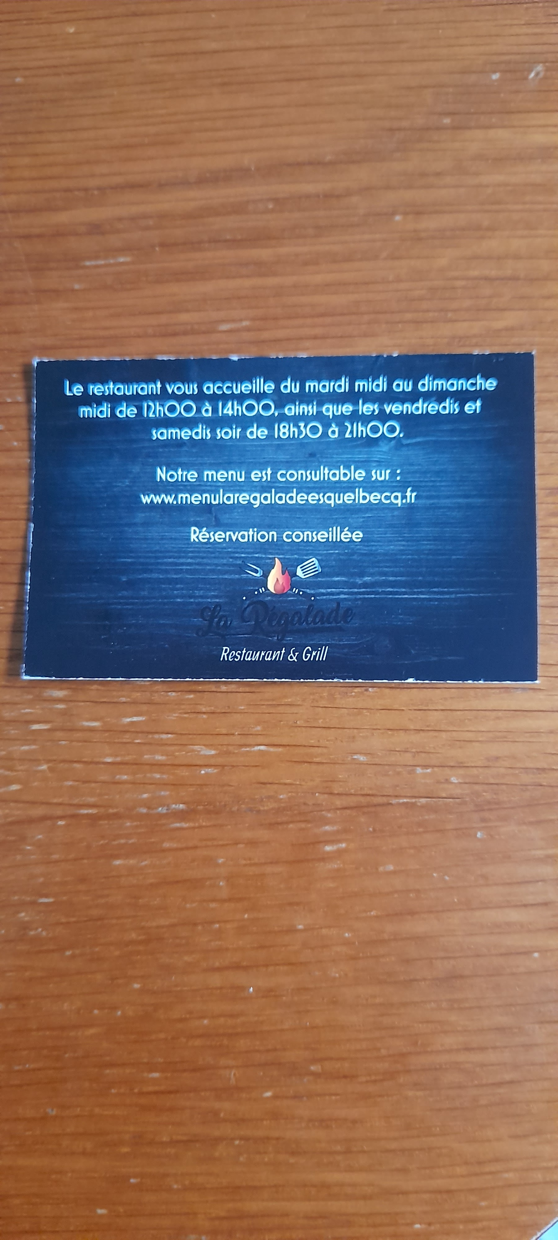 Bonjour Monsieur Delporte, Je suis Alexandre, gérant du restaurant "la Régalade Esquelbecq". Merci beaucoup d’avoir pris le temps de porter ce problème à mon attention. Étant très soucieux de la satisfaction de nos clients, je prend en compte votre retour et veillerai à ce que ce problème ne se reproduise plus. Toute l'équipe serait ravis de vous voir revenir dans notre établissement, pour une bien meilleure expérience. Vous pouvez me contacter via [email protected] ou au 06.63.51.85.69 afin de mieux comprendre ce qu’il s’est passé, et trouver une solution qui vous convient. Encore toutes nos excuses, Alexandre SARRAZYN Gérant du restaurant 06.63.51.85.69