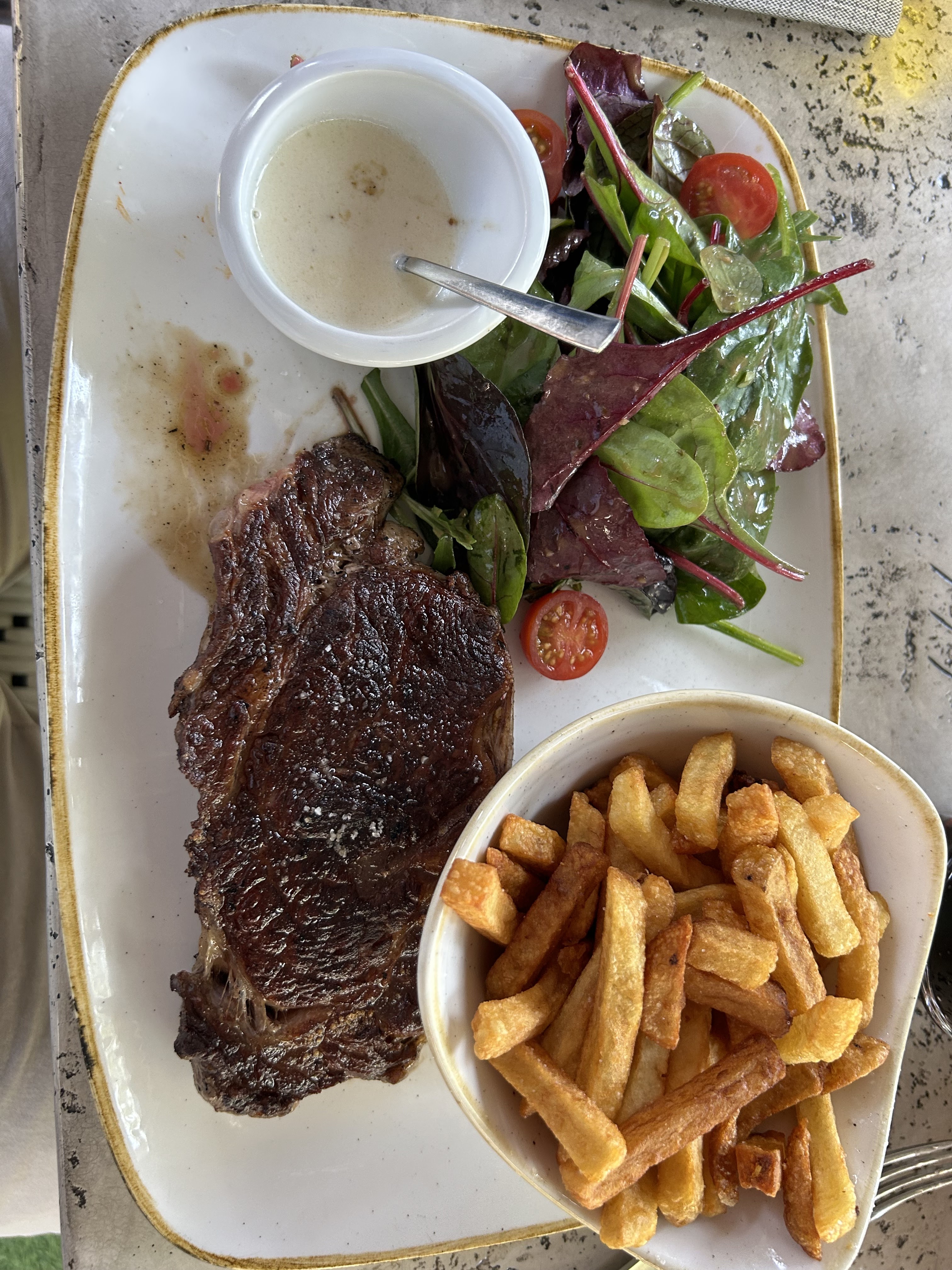 Posté le 26/10/2023 à 09:53"Nous venons de déjeuner ce jour et nous nous sommes vraiment régalés. Nous avons pris mon épouse et moi deux pièces de viande, qui étaient délicieuse, tendre cuite comme nous le désirions. Mon épouse ne voulait pas de l’accompagnement mis avec la viande, qu’à cela ne tienne, ils ont gentiment proposé des légumes et elle s’est régalée. Cecile et son équipe sont vraiment hyper gentils et d’une gentillesse adorable Je vous recommande ce lieu et en plus les desserts qui sont de Jerome De Oliveira sont merveilleusement délicieux"