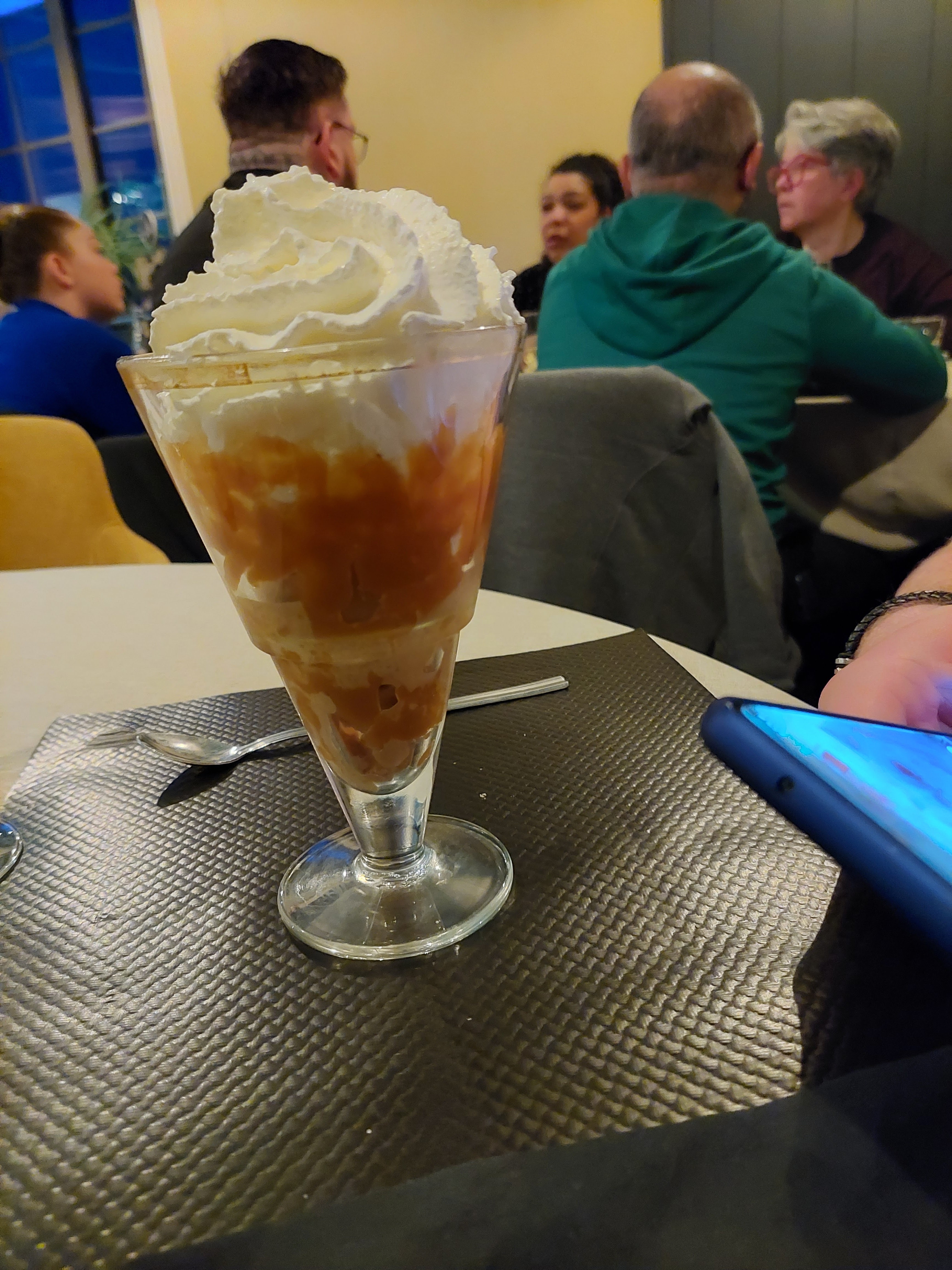 Accueil chaleureux, bonne ambiance, très bon rapport qualité prix, en plus il existe un espace jeux pour les enfants ! Seul bémol, le choux des profiteroles était sec et rassis, sans cela j'aurais mi 5 étoiles 🌟. Je recommande et reviendrai