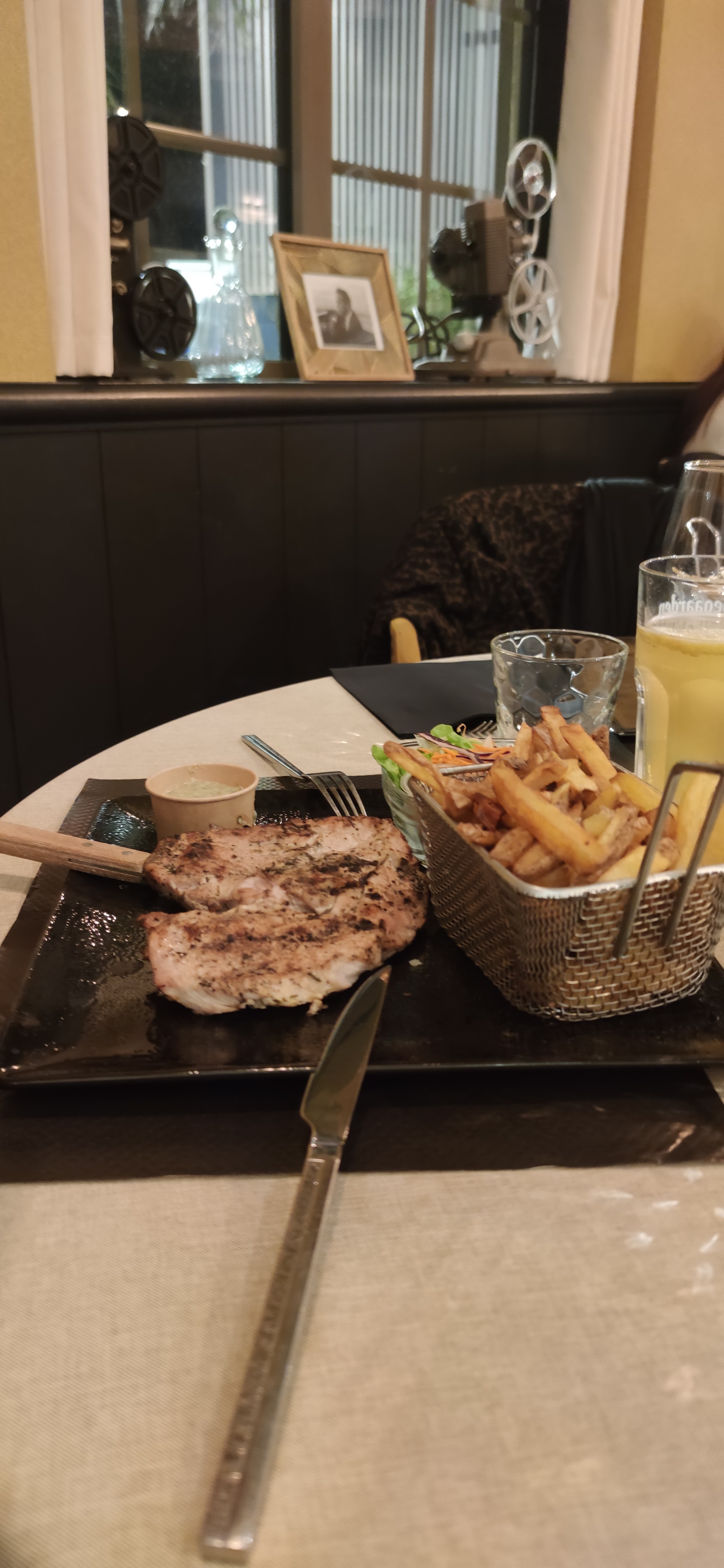 Repas pas au top, j'ai demandé une viande saignante ,elle était mega cuite , j'ai demandé au serveur une autre viande, je l'ai eu à point. Bon... mon mari a pris une choucroute de la mer , pas top. Pour les menus enfants on a demandé des steak à points ils les ont eu saignants et n'ont pas voulu mangé et comme ils avaient vu le sang de la viande ils refusaient d'en demander une autre. Ils sont ressorti le ventre presque vide. Un peu déçu car nous avions vu de super avis. Par contre la dame de l'accueil très sympa et accueillante