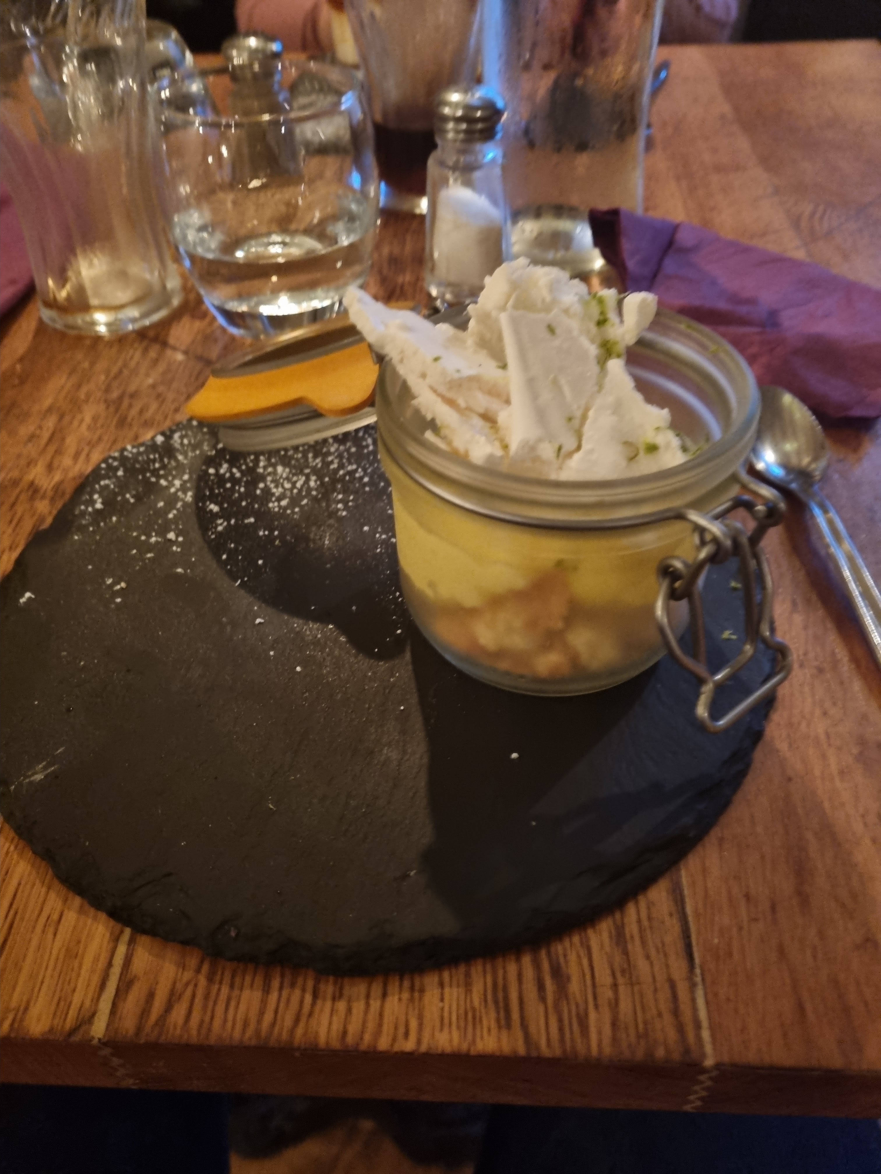 Posté le 29/12/2024 à 12:30"Restau très sympa, service agréable et produits de qualité et sans chichi. Mention spéciale à la mousse au chocolat, portions de viande très généreuses et bonnes (plats pris hors menu) mais un poil léger sur les frites. Chauffages extérieurs qui dépotent..."