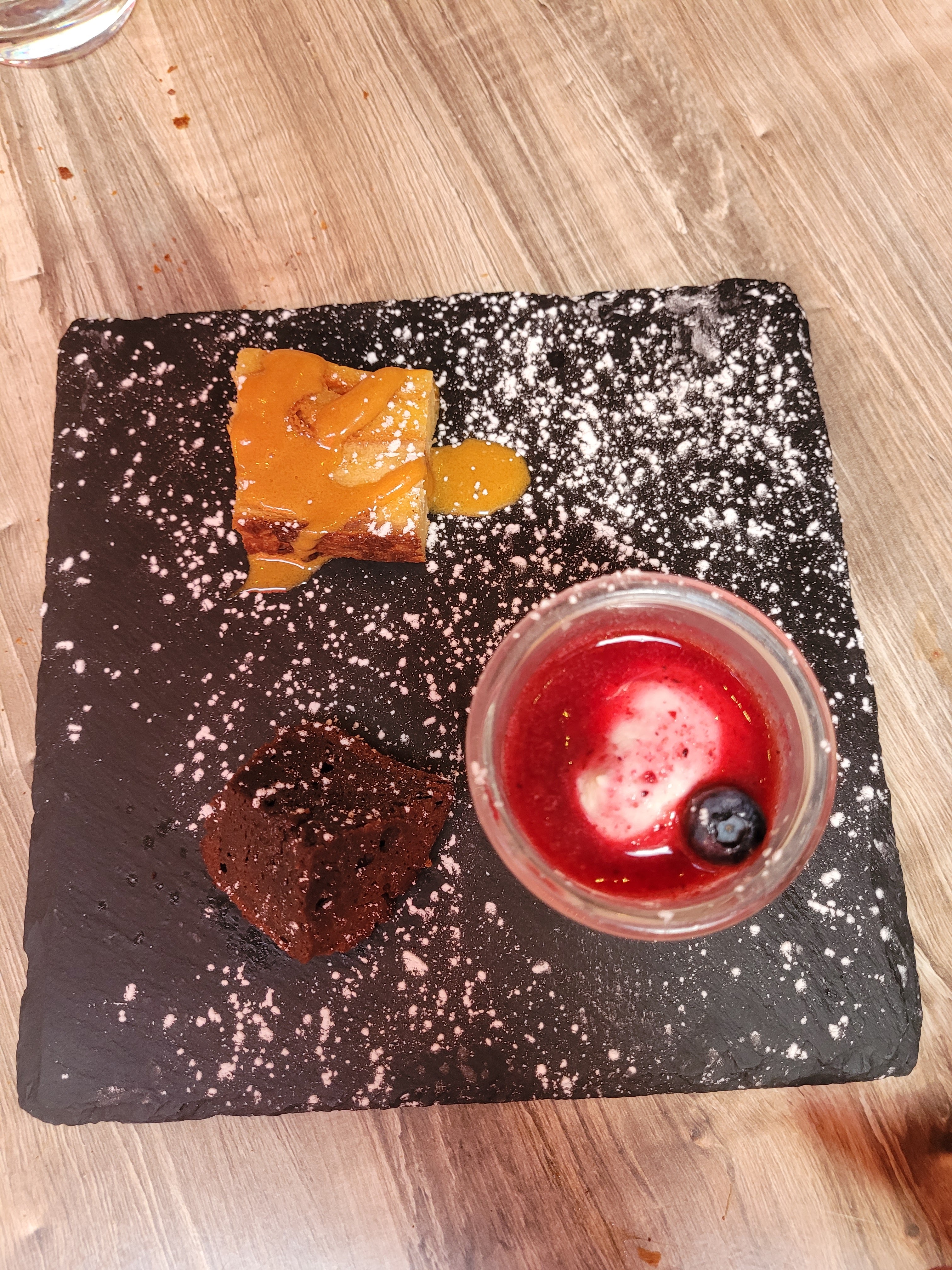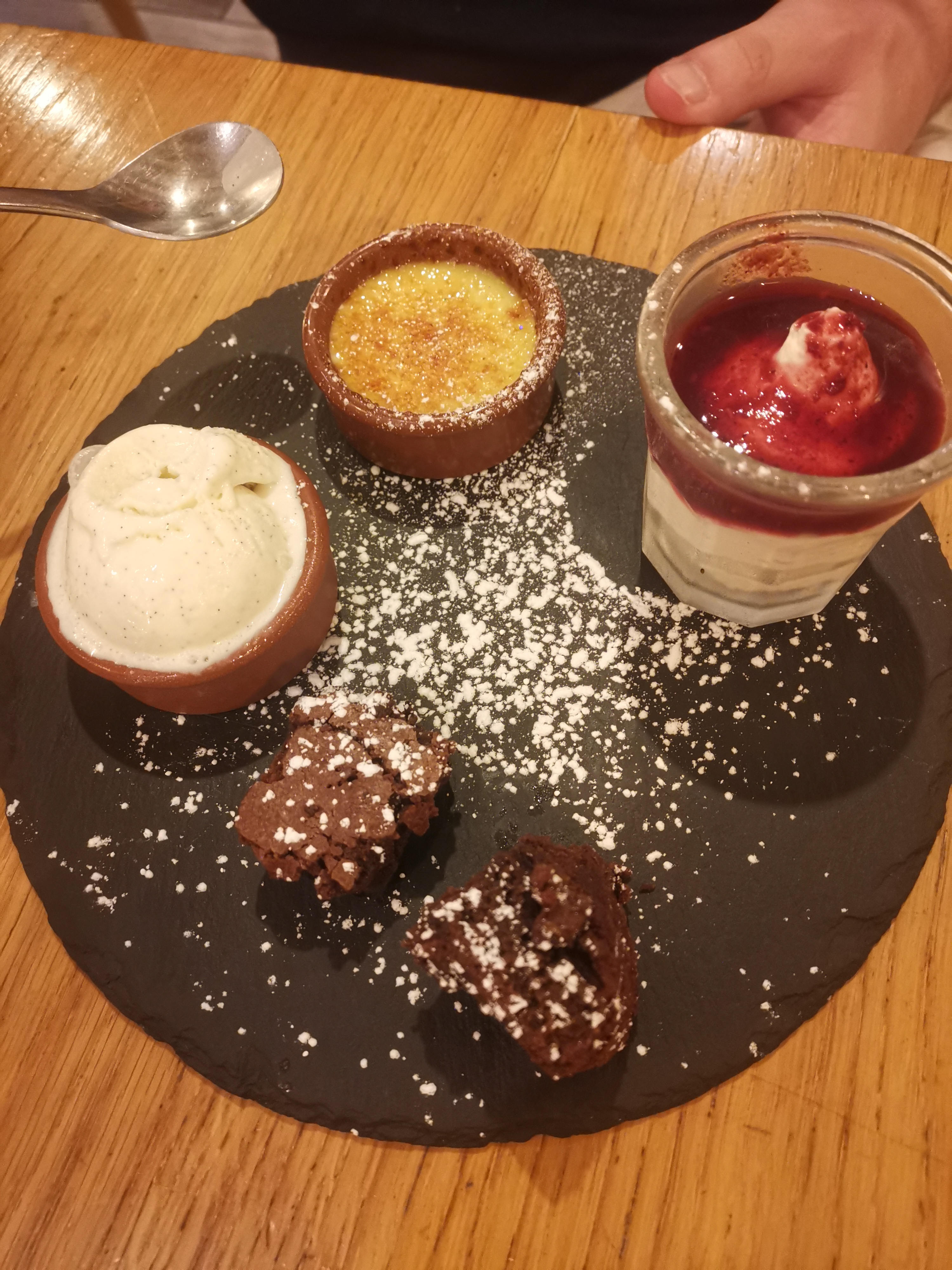 Posté le 08/09/2024 à 19:26"Déception. Influencés par les avis positifs, nous avons choisi ce resto (de grillades au feu de bois) ce 9/9/24 en soirée. Les plats sont annoncés avec légumes frais: haricots verts et champignons. Pas vu un champi et les haricots ne sont pas des légumes frais (boîte?) L'ecrasé de purée qui accompagne était tiède/froid. Ces déceptions signalées, seule réponse : ha je vais le dire en cuisine Viande peu goûtue mais cuisson parfaite et très bonne sauce pour accompagner. Dessert (assiette gourmande: 1petit tiramisu aux fruits rouge, une mousse chocolat, 1mini crème brûlée) très bon. Service rapide et correct sans plus. Même pas un regard ou un mot d'échange quand on a réglé l'addition. Rien de convivial."