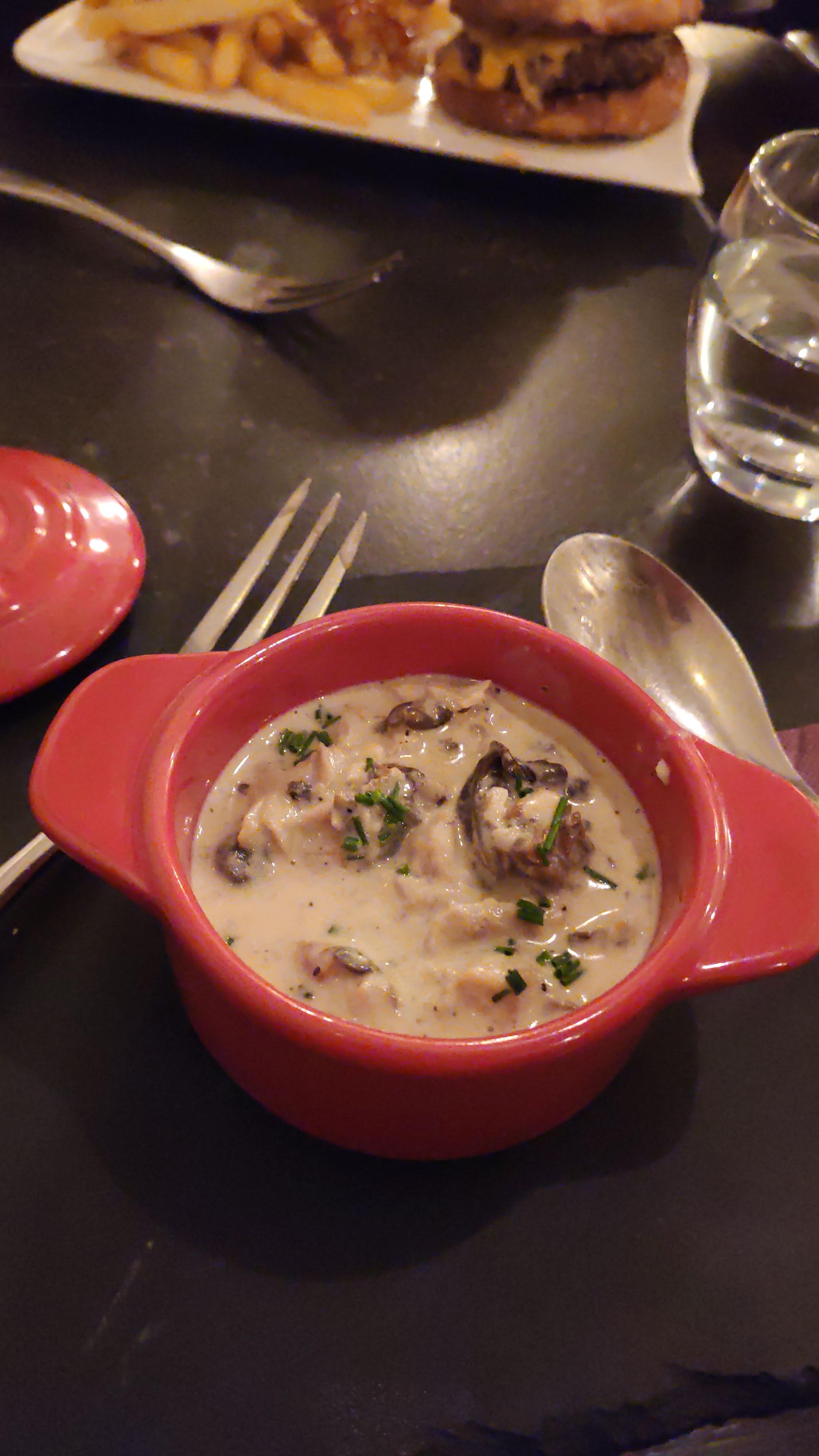 Posté le 11/03/2024 à 14:25"Plutôt déçus de ce restaurant recommandé par notre chambre d'hôtes. Les haricots étaient trop cuits, les champignons annoncés sur toutes les cartes et tableaux étaient absents. Inversion dans les cuissons des viandes: celui qui avait demandé bien cuit s'est retrouvé avec la viande saignante et inversement... Et pour finir une crème brûlée froide et farineuse. Bref à revoir ou alors pas un samedi soir"