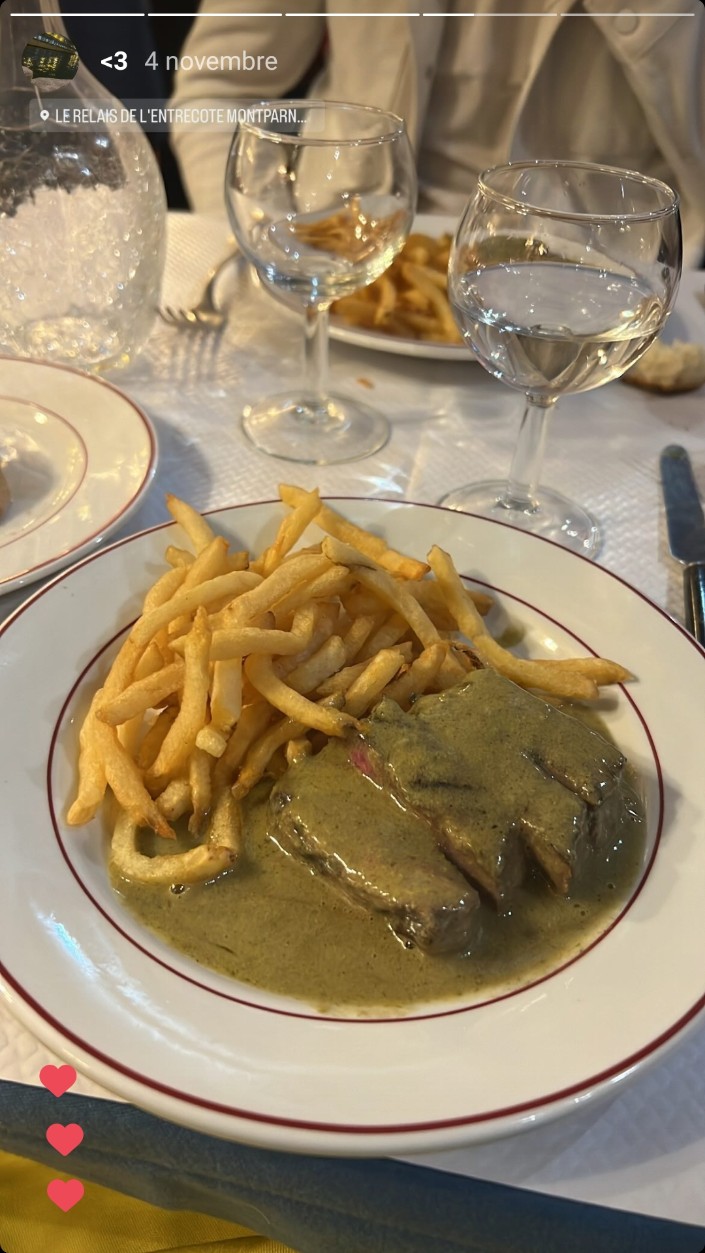 Posté le 09/06/2024 à 19:08"Une adresse mythique et un service à la française à tester sans plus tarder ! Nous avons commandé 2 Entrecôtes Bien Cuites qui ont été précédées de deux salade aux noix. Ensuite en desserts, nous avons pris un Vacherin du Relais et des Profiteroles au Chocolat. Nous tenons à souligner le service impeccable de Madame Jehanne, une prestation de qualité ! Je vous recommande l’adresse 🙌🏾✌🏾"