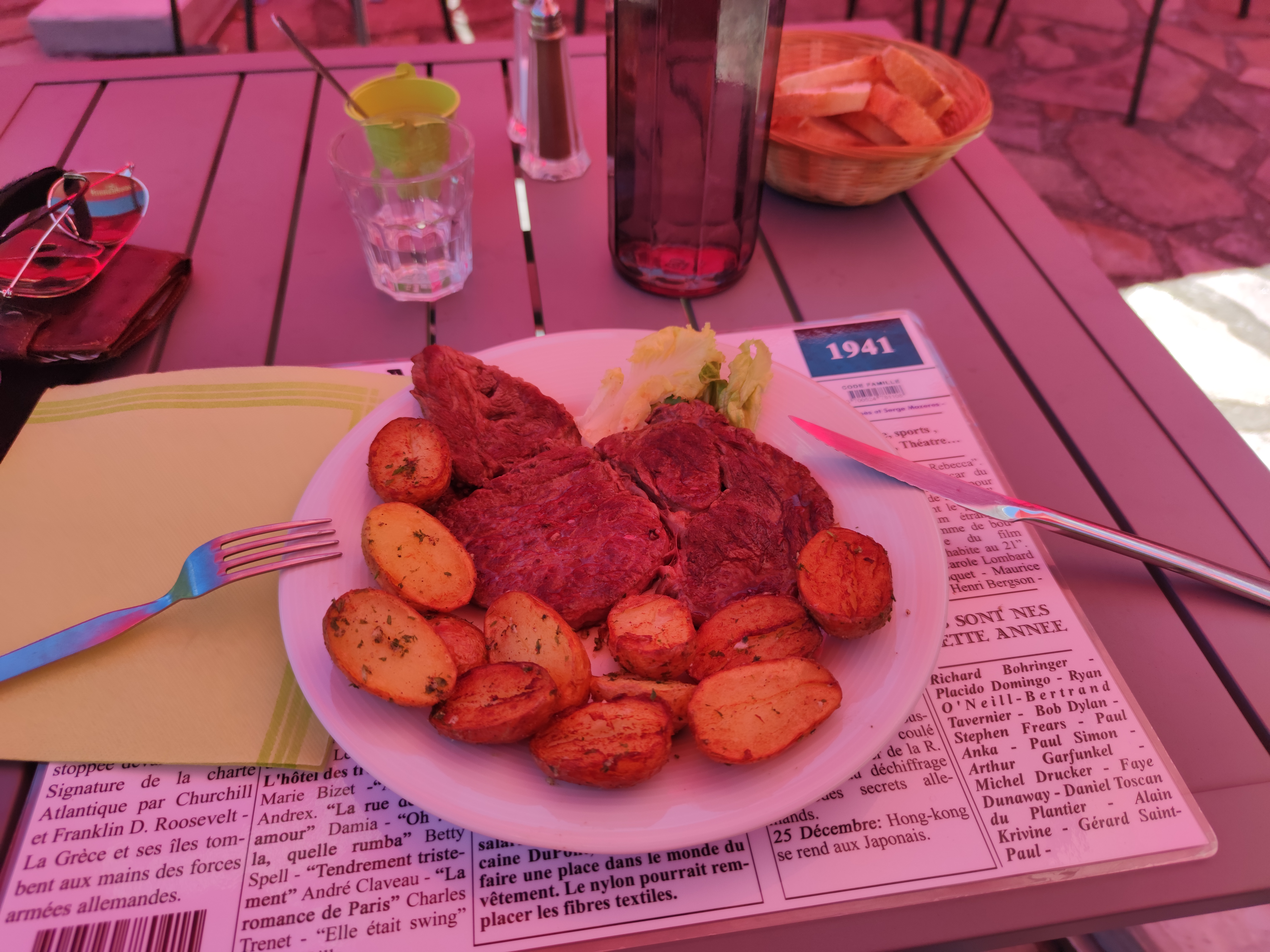 Posté le 05/10/2024 à 15:41"Déjeuner en terrasse un dimanche ensoleillé. Très agréable avec l'odeur du barbecue grillant nos pièces de boucher très très copieuses et bonnes. Petits estomac s s'abstenir! Des hamburgers ou salades sont aussi proposées. Je recommande."